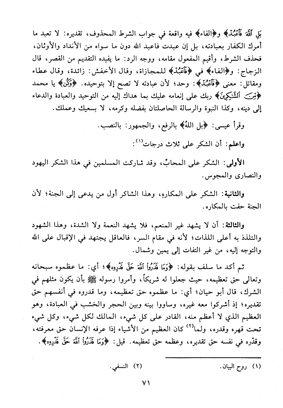 واعلم: أن الشكر على ثلاث درجات (¬1):