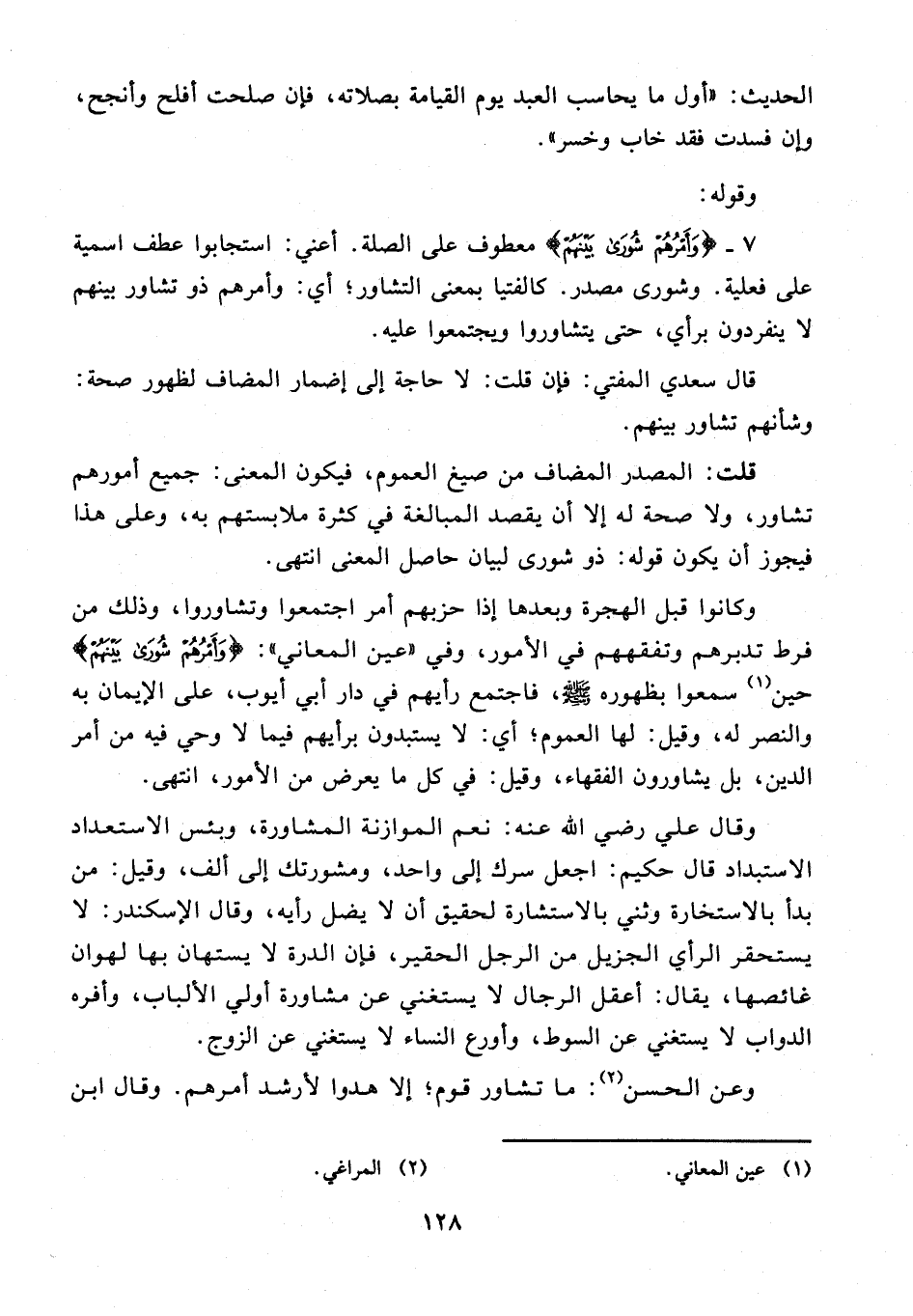 قال سعدي المفتي: فإن قلت: لا حاجة إلى إضمار المضاف لظهور صحة: وشأنهم تشاور بينهم.