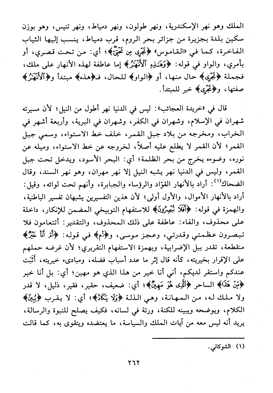 قال في "خريدة العجائب": ليس في الدنيا نهر أطول من النيل؛ لأن مسيرته شهران في الإِسلام، وشهران في الكفر، وشهران في البرية، وأربعة أشهر في الخراب، ومخرجه أو بلاد جبل القمر، خلف خط الاستواء، وسمي جبل القمر؛ لأن القمر لا يطلع عليه أصلًا، لخروجه عن خط الاستواء، وميله عن نوره، وضوءه يخرج في بحر الظلمة؛ أي: البحر الأسود، ويدخل تحت جبل القمر، وليس في الدنيا نهر يشبه النيل إلا نهر مهران، وهو نهر السند، وقال الضحاك (¬1): أراد بالأنهار القوّاد والرؤساء والجبابرة، وأنهم تحت لوائه، وقيل: أراد بالأنهار الأموال، والأول أولى؛ لأن هذن التفسيرين يشبهان تفسير الباطنية، والهمزة في قوله: {أَفَلَا تُبْصِرُونَ} للاستفهام التوبيخي المضمن للإنكار، داخلة على محذوف، والفاء: عاطفة على ذلك المحذوف، والتقدير: أتتعامون فلا تبصرون عظمتي وقدرتي، وعجز موسى،