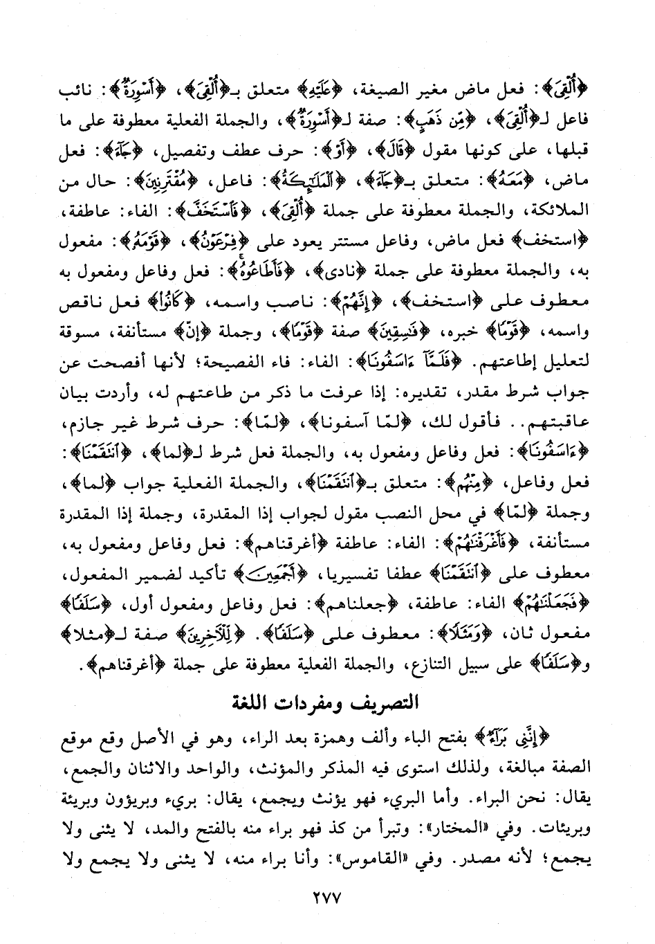 {إِنَّنِي بَرَاءٌ} بفتح الباء وألف وهمزة بعد الراء، وهو في الأصل وقع موقع الصفة مبالغة، ولذلك استوى فيه المذكر والمؤنث، والواحد والاثنان والجمع، يقال: نحن البراء. وأما البريء فهو يؤنث ويجمع، يقال: بريء وبريؤون وبريئة وبريئات. وفي "المختار": وتبرأ من كذ فهو براء منه بالفتح والمد، لا يثنى ولا يجمع؛ لأنه مصدر. وفي "القاموس": وأنا براء منه، لا يثنى ولا يجمع ولا