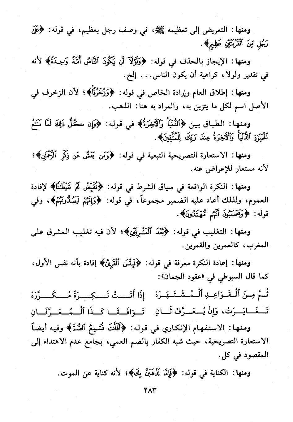 ومنها: التعريض إلى تعظيمه - صلى الله عليه وسلم -، في وصف رجل بعظيم، في قوله: {عَلَى رَجُلٍ مِنَ الْقَرْيَتَيْنِ عَظِيمٍ}.