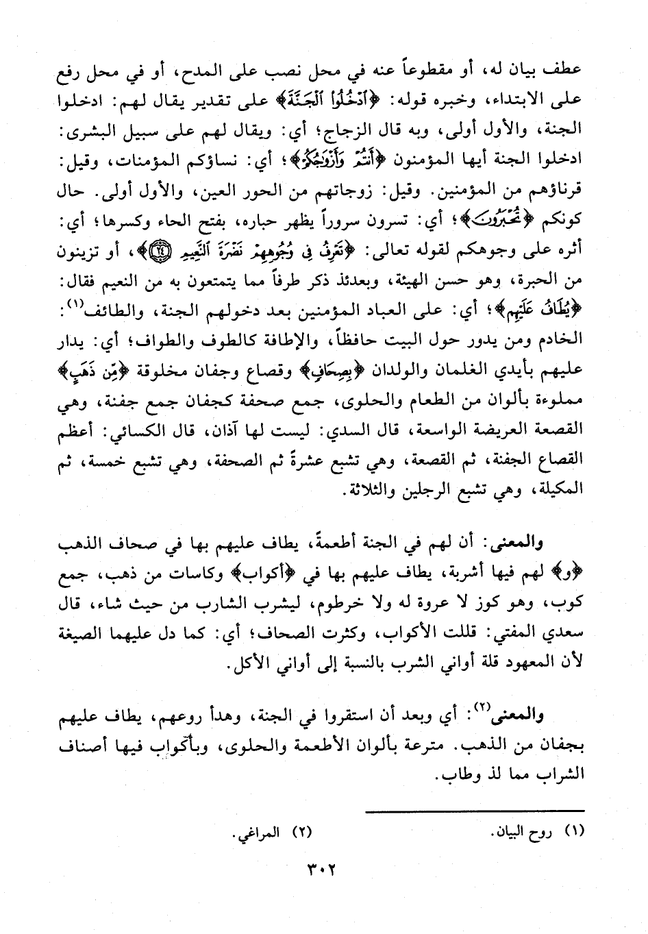 والمعنى (¬2): أي وبعد أن استقروا في الجنة، وهدأ روعهم، يطاف عليهم بجفان من الذهب. مترعة بألوان الأطعمة والحلوى، وبأكواب فيها أصناف الشراب مما لذ وطاب.