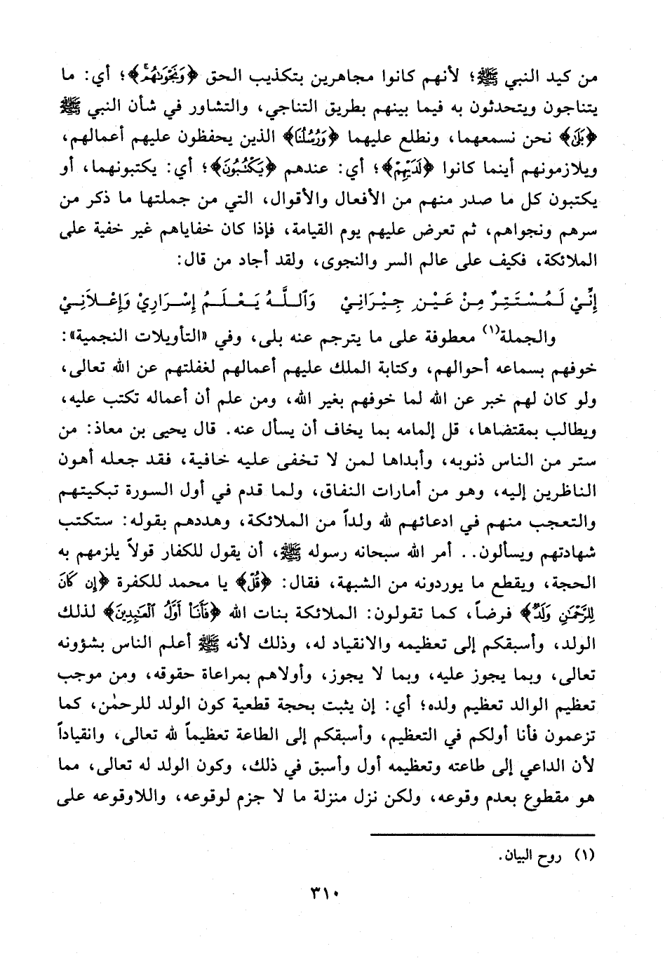 من كيد النبي - صلى الله عليه وسلم -؛ لأنهم كانوا مجاهرين بتكذيب الحق {وَنَجْوَاهُمْ}؛ أي: ما يتناجون ويتحدثون به فيما بينهم بطريق التناجي، والتشاور في شأن النبي - صلى الله عليه وسلم - {بَلَى} نحن نسمعهما، ونطلع عليهما {وَرُسُلُنَا} الذين يحفظون عليهم أعمالهم، ويلازمونهم أينما كانوا {لَدَيْهِمْ}؛ أي: عندهم {يَكْتُبُونَ}؛ أي: يكتبونهما، أو يكتبون كل ما صدر منهم من الأفعال والأقوال، التي من جملتها ما ذكر من سرهم ونجواهم، ثم تعرض عليهم يوم القيامة، فإذا كان خفاياهم غير خفية علي الملائكة، فكيف على عالم السر والنجوى، ولقد أجاد من قال: