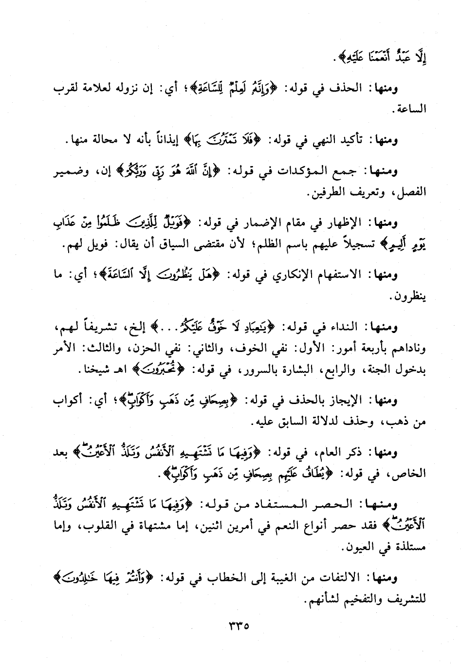 ومنها: الحذف في قوله: {وَإِنَّهُ لَعِلْمٌ لِلسَّاعَةِ}؛ أي: إن نزوله لعلامة لقرب الساعة.