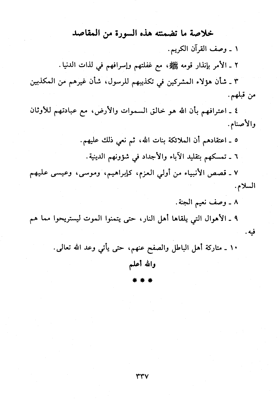 خلاصة ما تضمنته هذه السورة من المقاصد