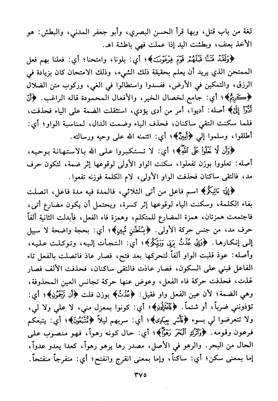 {إِنِّي آتِيكُمْ} اسم فاعل من أتى الثلاثي، فالمدة فيه مدة فاعل، اتصلت بفاء الكلمة، وسكنت الياء لوقوعها إثر كسرة، ويحتمل أن يكون مضارع أتى، فاجتمعت همزتان، همزة المضارع للمتكلم، وهمزة فاء الفعل، فأبدلت الثانية ألفًا حرف مد، من جنس حركة الأولى. {بِسُلْطَانٍ مُبِينٍ}؛ أي: بحجة واضحة لا سبيل إلى إنكارها. {وَإِنِّي عُذْتُ بِرَبِّي وَرَبِّكُمْ}؛ أي: التجأت إليه، وتوكلت عليه، وأصله: عوذ قلبت الواو ألفًا لتحركها بعد فتح، فصار عاذ فاتصلت بالفعل تاء الفاعل فبني على السكون، فصار عاذت فالتقى ساكنان، فحذفت الألف فصار عَذت، فحذفت حركة فاء الفعل، وعوض عنها حركة تجانس العين المحذوفة، وهي الضمة؛ لأن عين الفعل واو فقيل: {عُذْتُ} بوزن قلت {أَن تَرجْمُوُنِ}؛ أي: تؤذونني ضربًا، أو شتمًا. {فَاعْتَزِلُونِ}؛ أي: كونوا بمعزل منى، لا علي ولا لي، ولا تتعرضوا لي بسوء {فَأَسْرِ بِعِبَادِي}؛ أي: سربهم ليلًا {مُتَّبَعُونَ}؛ أي: يتبعكم فرعون وقومه. {وَاتْرُكِ الْبَحْرَ رَهْوًا}؛ أي: حال كونه رهوًا، فهو منصوب على الحال من البحر. والرهو في الأصل، مصدر رها يرهو رهوًا، كعدا يعدو عدوًا، إما بمعنى سكن؛ أي: ساكنًا، وإما بمعنى انفرج وانفتح؛ أي: منفرجًا منفتحًا.