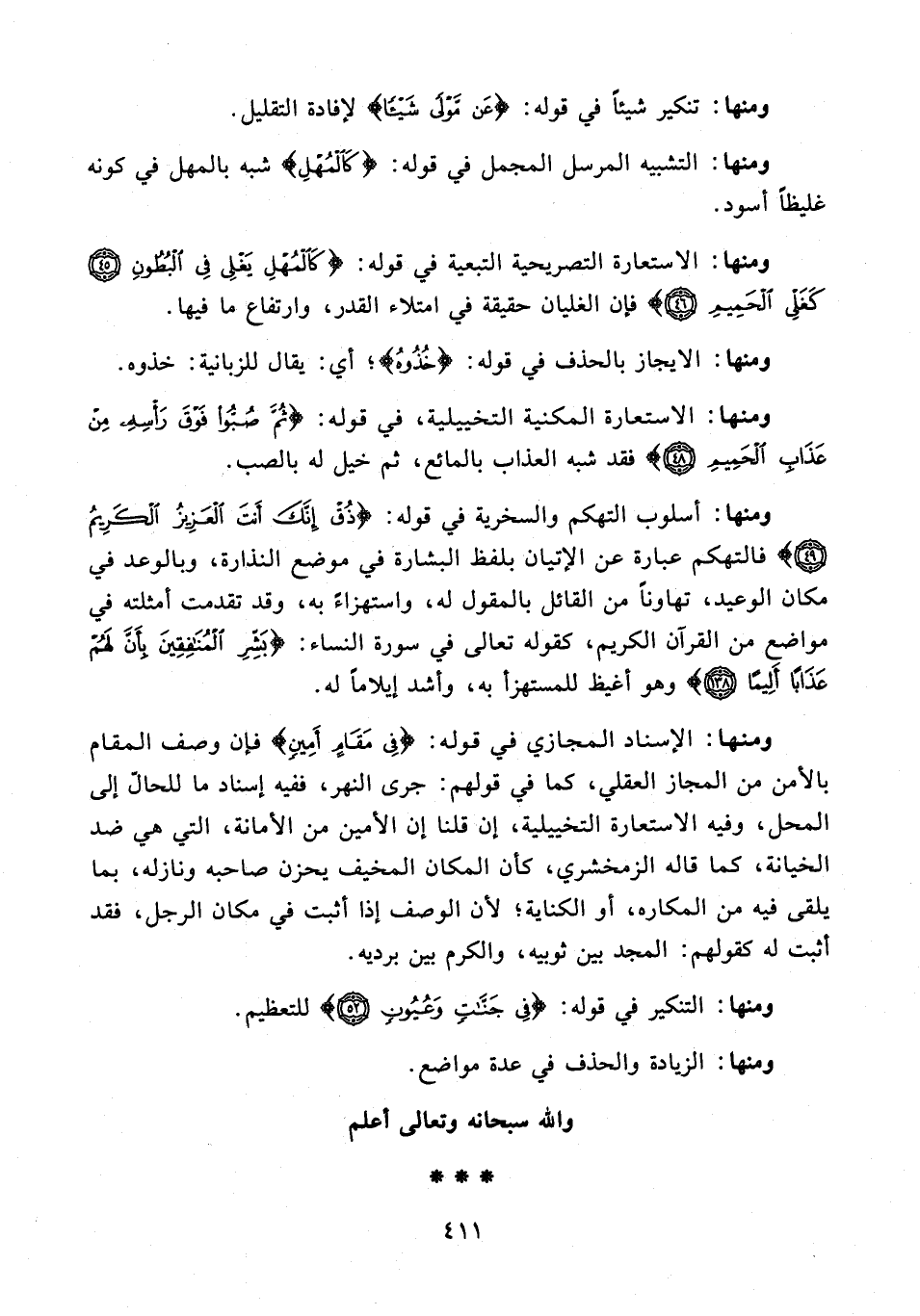ومنها: تنكير شيئًا في قوله: {عَنْ مَوْلًى شَيْئًا} لإفادة التقليل.