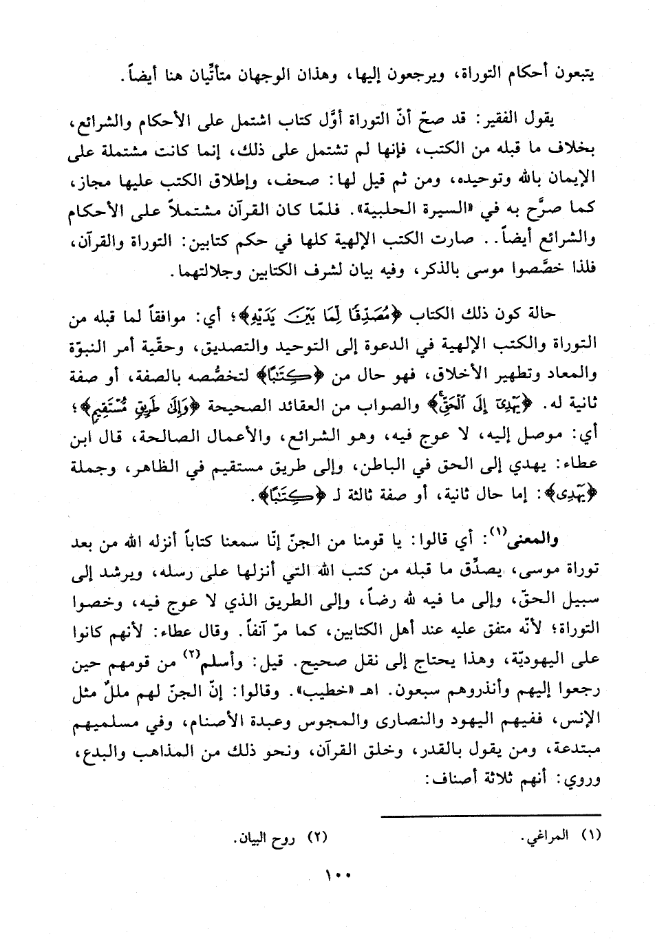 يقول الفقير: قد صحّ أنّ التوراة أول كتاب اشتمل على الأحكام والشرائع، بخلاف ما قبله من الكتب، فإنها لم تشتمل على ذلك، إنما كانت مشتملة على الإيمان بالله وتوحيده، ومن ثم قيل لها: صحف، وإطلاق الكتب عليها مجاز، كما صرَّح به في "السيرة الحلبية". فلمّا كان القرآن مشتملًا على الأحكام والشرائع أيضًا .. صارت الكتب الإلهية كلها في حكم كتابين: التوراة والقرآن، فلذا خصَّصوا موسى بالذكر، وفيه بيان لشرف الكتابين وجلالتهما.