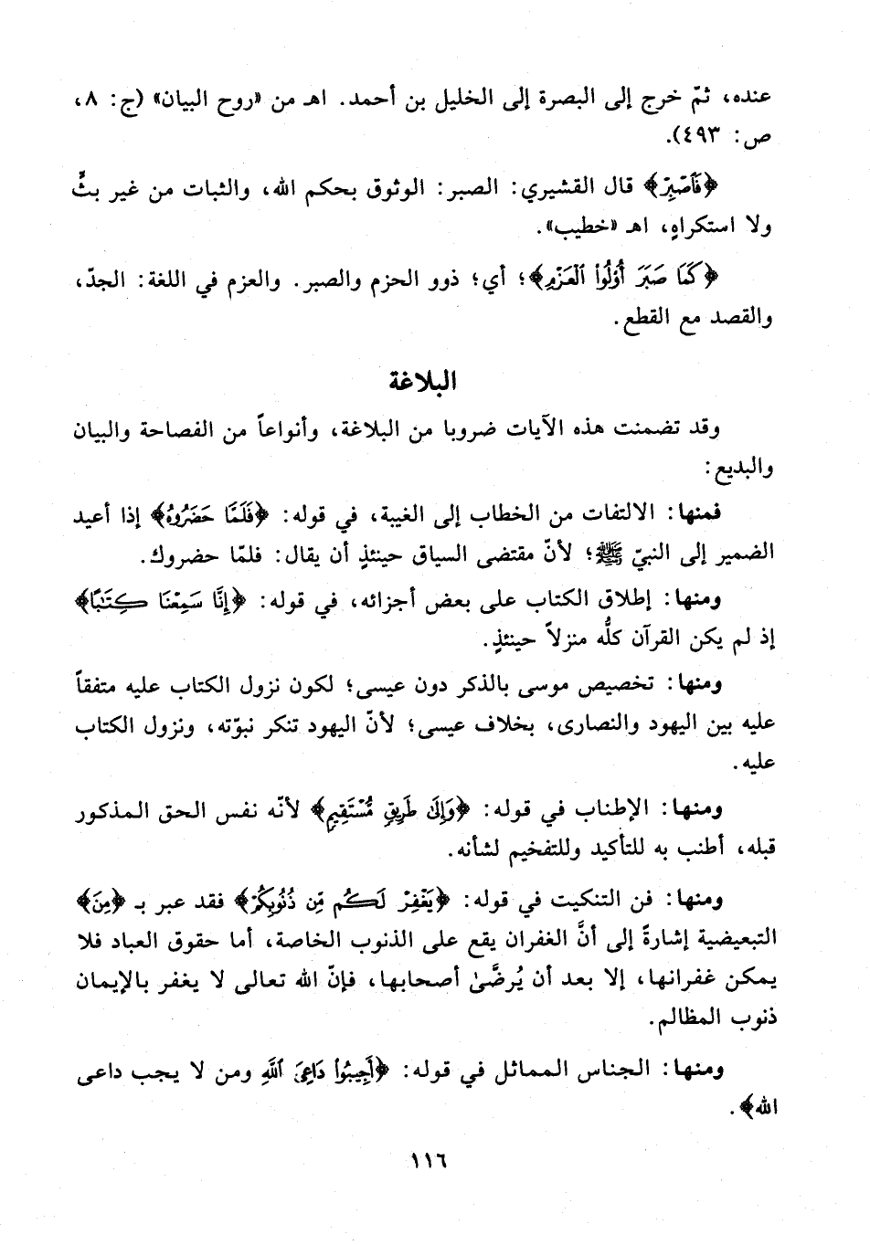 وقد تضمنت هذه الآيات ضروبًا من البلاغة، وأنواعًا من الفصاحة والبيان والبديع: