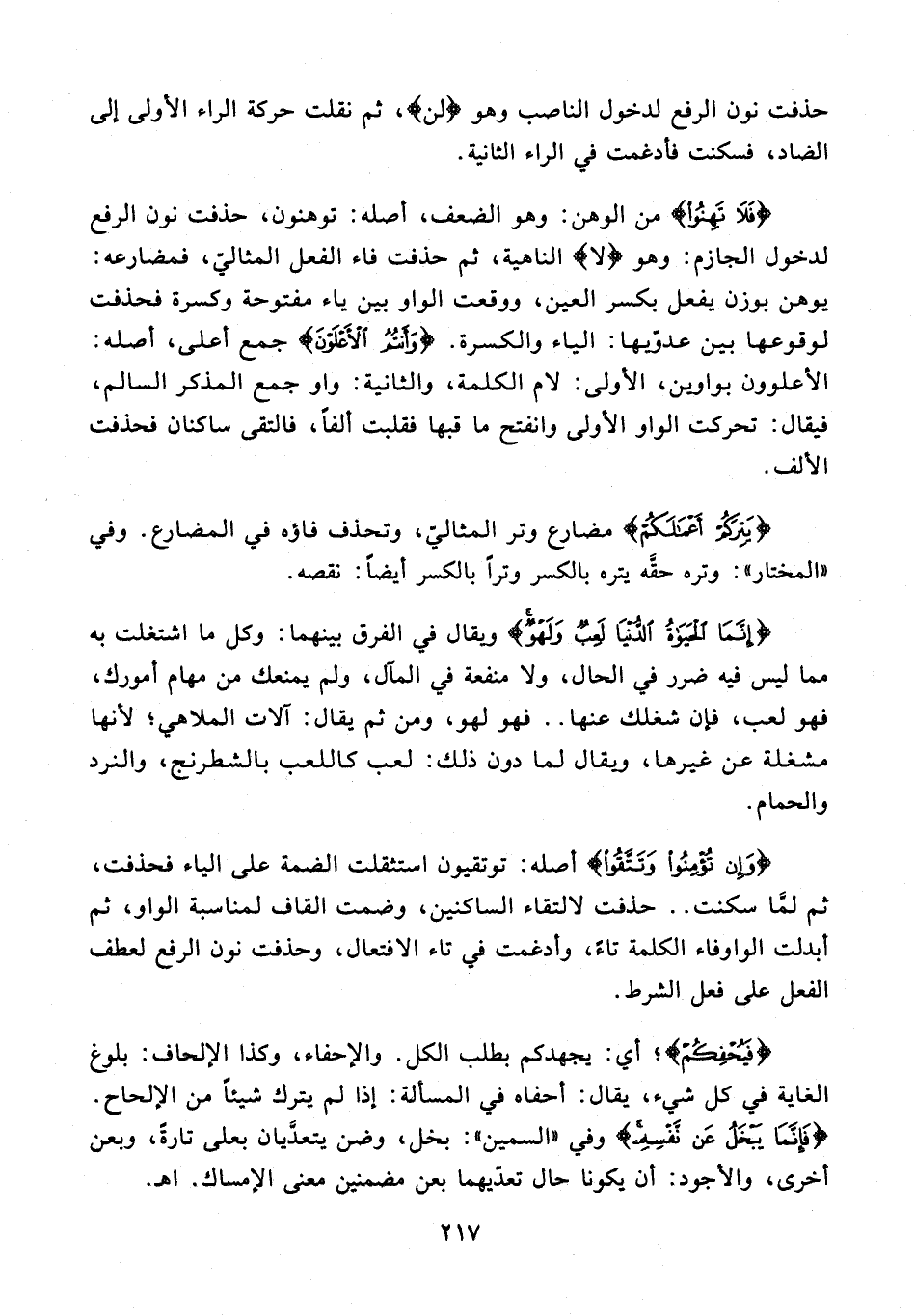 {إِنَّمَا الْحَيَاةُ الدُّنْيَا لَعِبٌ وَلَهْوٌ} ويقال في الفرق بينهما: وكل ما اشتغلت به مما ليس فيه ضرر في الحال، ولا منفعة في المآل، ولم يمنعك من مهام أمورك، فهو لعب، فإن شغلك عنها .. فهو لهو، ومن ثم يقال: آلات الملاهي؛ لأنها مشغلة عن غيرها، ويقال لما دون ذلك: لعب كاللعب بالشطرنج، والنرد والحمام.