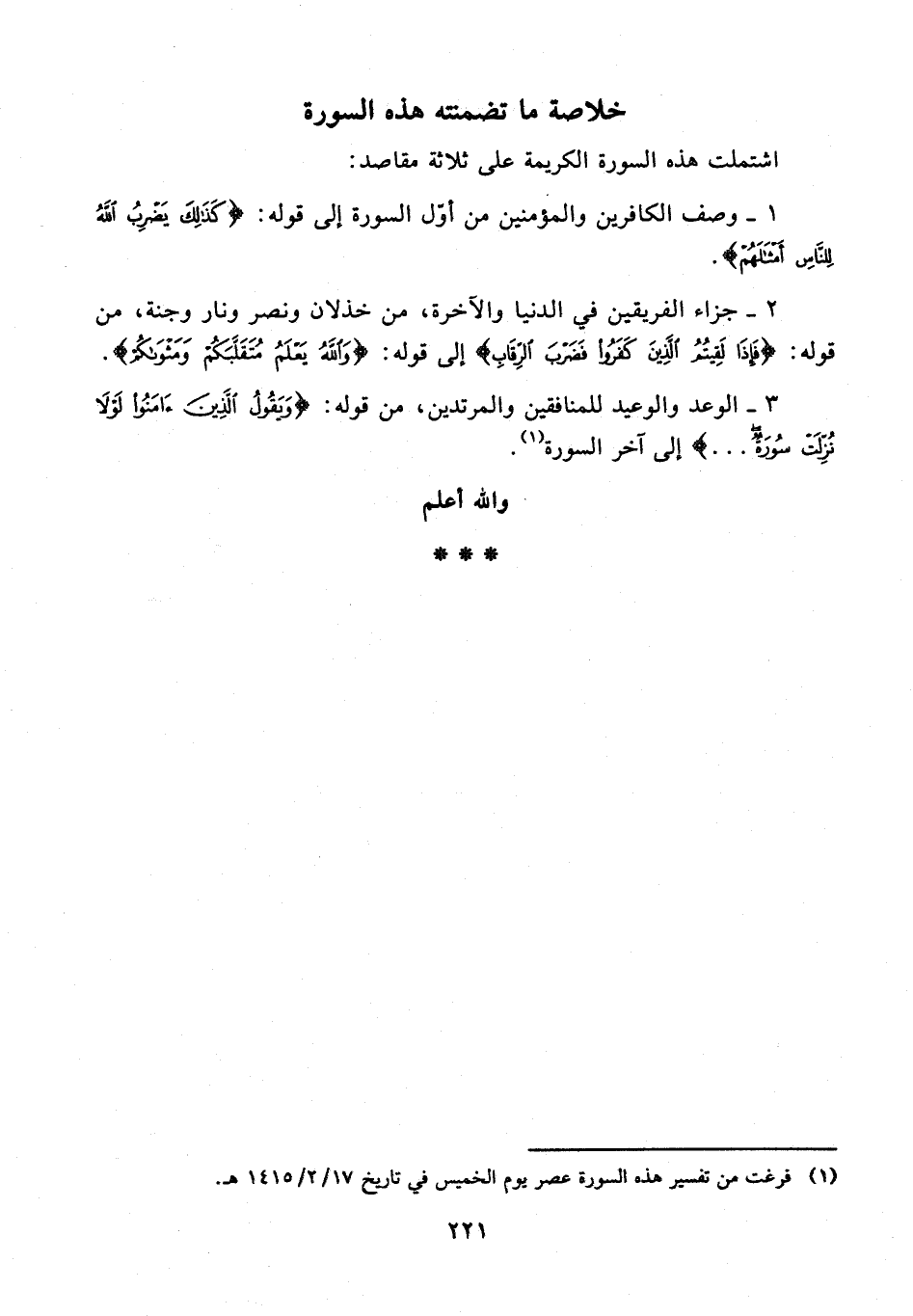 (¬1) فرغت من تفسير هذه السورة عصر يوم الخميس في تاريخ 17/ 2/ 1415 هـ.