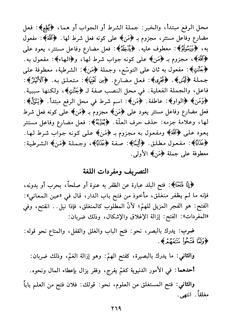 والثاني: فتح المستغلق من العلوم، نحو: قولك: فلان فتح من العلم بابًا مغلقًا. انتهى.