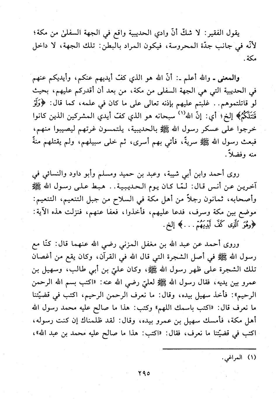 يقول الفقير: لا شكّ أنّ وادي الحديبية واقع في الجهة السفلي من مكة؛ لأنّه في جانب جدَّة المحروسة، فيكون المراد بالبطن: تلك الجهة، لا داخل مكة.