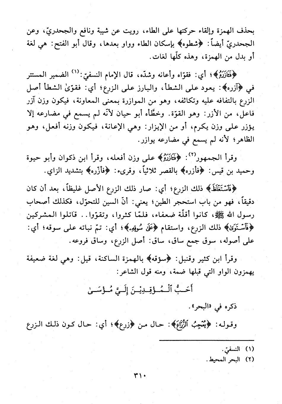 بحذف الهمزة وإلقاء حركتها على الطاء، رويت عن شيبة ونافع والجحدريّ، وعن الجحدريّ أيضًا: {شطوه} بإسكان الطاء وواو بعدها، وقال أبو الفتح: هي لغة أو بدل من الهمزة، وهذه كلّها لغات.