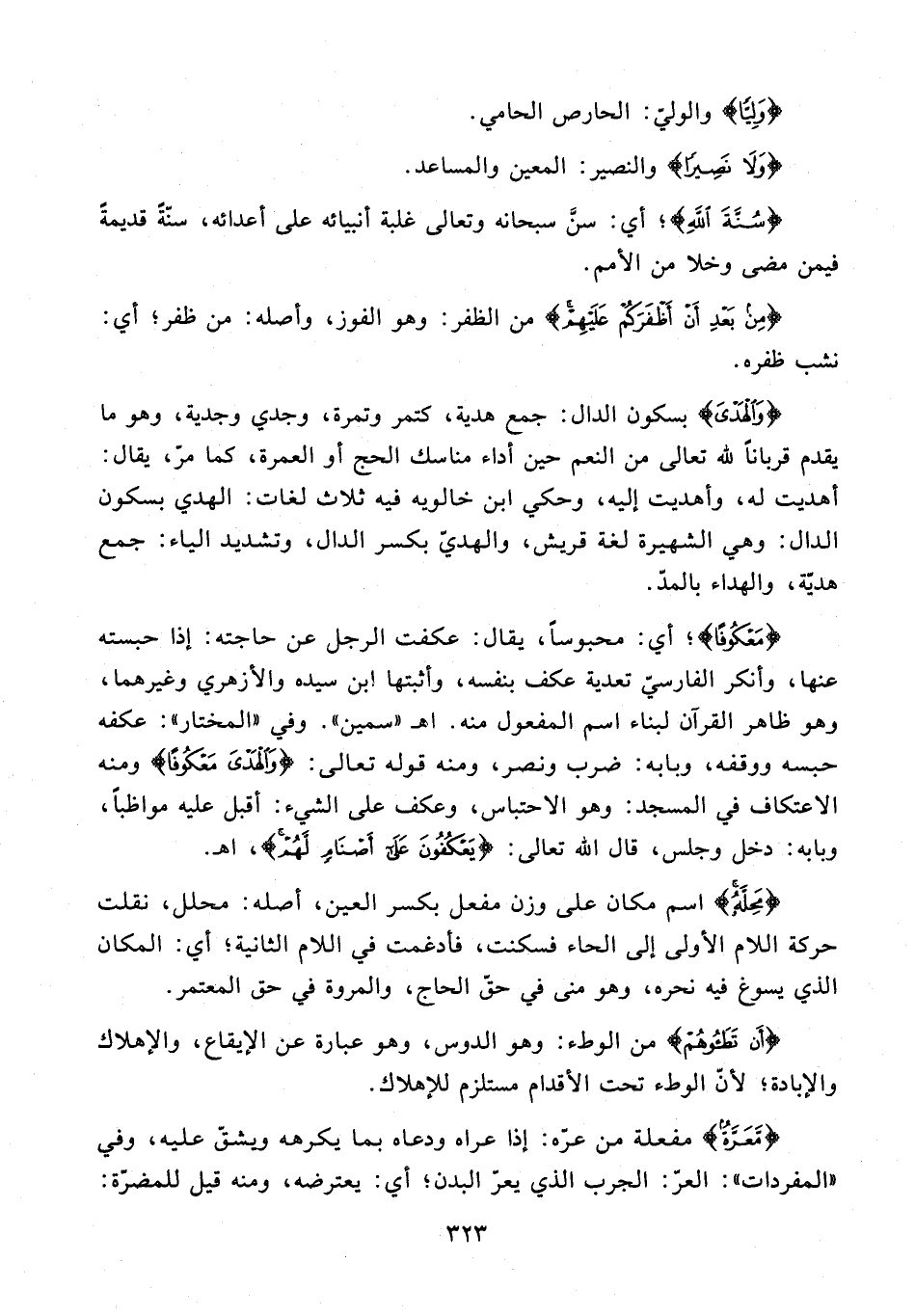 {مَعْكُوفًا}؛ أي: محبوسًا، يقال: عكفت الرجل عن حاجته: إذا حبسته عنها، وأنكر الفارسيّ تعدية عكف بنفسه، وأثبتها ابن سيده والأزهري وغيرهما، وهو ظاهر القرآن لبناء اسم المفعول منه. اهـ "سمين". وفي "المختار": عكفه حبسه ووقفه، وبابه: ضرب ونصر، ومنه قوله تعالى: {وَالْهَدْيَ مَعْكُوفًا} ومنه الاعتكاف في المسجد: وهو الاحتباس، وعكف على الشيء: أقبل عليه مواظبًا، وبابه: دخل وجلس، قال الله تعالى: {يَعْكُفُونَ عَلَى أَصْنَامٍ لَهُمْ}، اهـ.