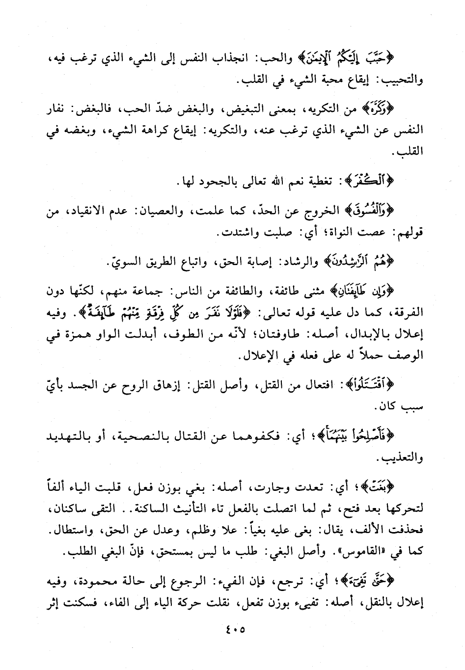 {حَبَّبَ إِلَيْكُمُ الْإِيمَانَ} والحب: انجذاب النفس إلى الشيء الذي ترغب فيه، والتحبيب: إيقاع محبة الشيء في القلب.