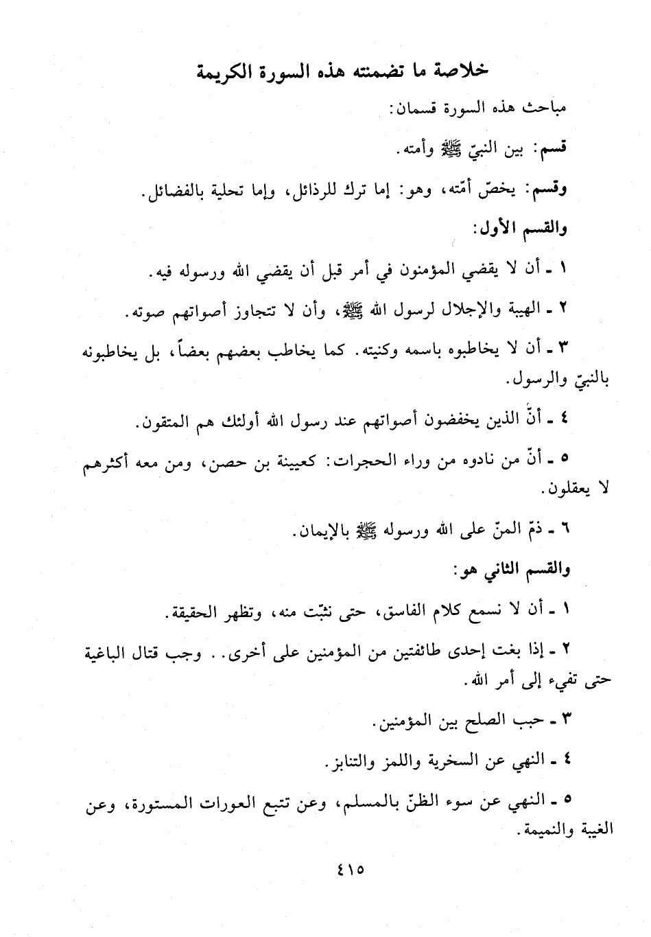 وقسم: يخصّ أمّته، وهو: إما ترك للرذائل، وإما تحلية بالفضائل.