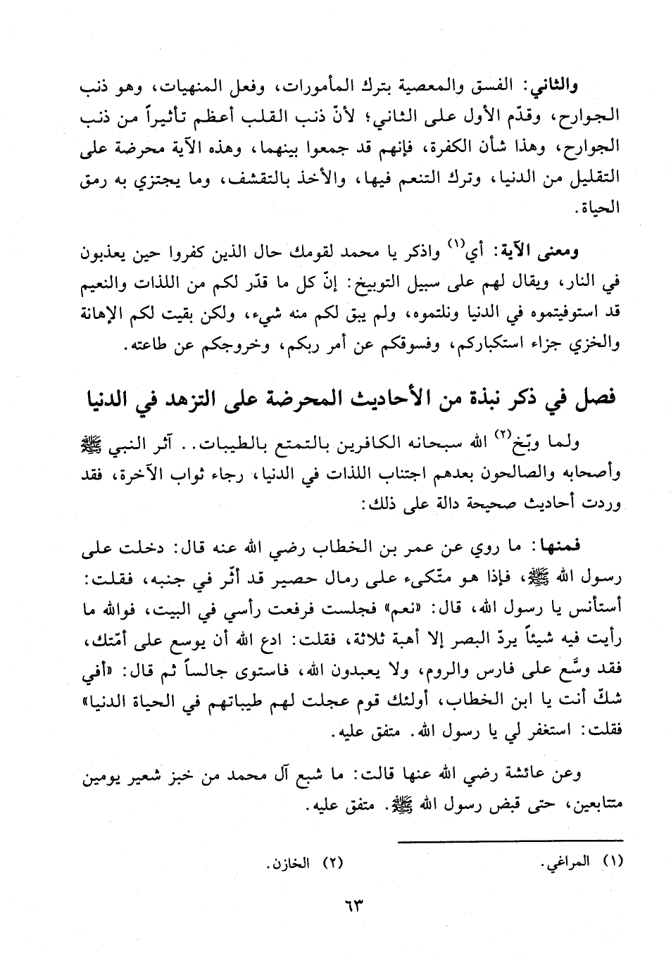 فصل في ذكر نبذة من الأحاديث المحرضة على التزهد في الدنيا