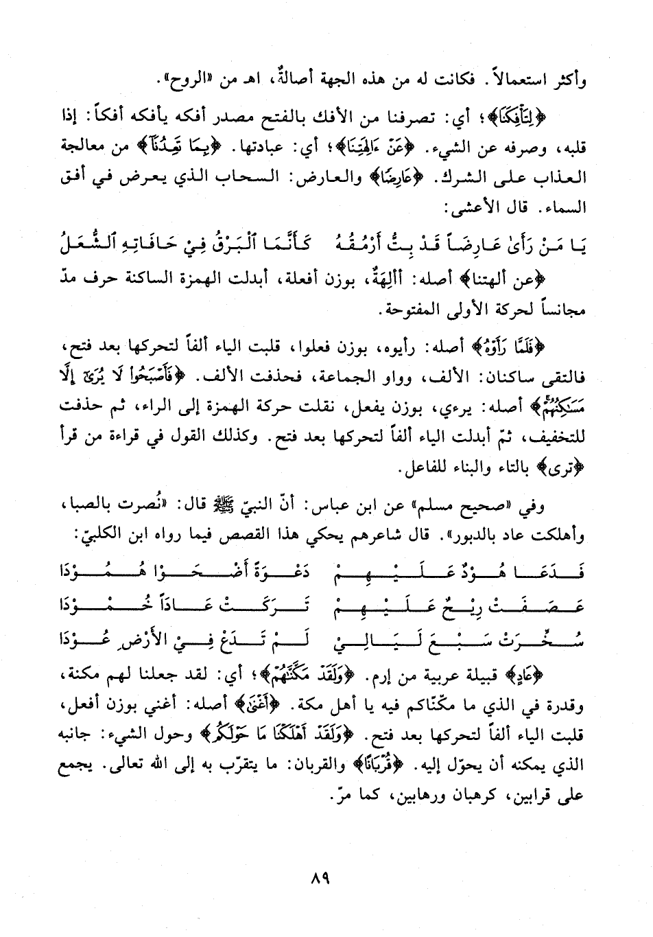 {عَادٍ} قبيلة عربية من إرم. {وَلَقَدْ مَكَّنَّاهُمْ}؛ أي: لقد جعلنا لهم مكنة، وقدرة في الذي ما مكّنّاكم فيه يا أهل مكة. {أَغنى} أصله: أغني بوزن أفعل، قلبت الياء ألفًا لتحركها بعد فتح. {وَلَقَدْ أَهْلَكْنَا مَا حَوْلَكُمْ} وحول الشيء: جانبه الذي يمكنه أن يحوّل إليه. {قُرْبَانًا} والقربان: ما يتقرّب به إلى الله تعالى. يجمع على قرابين، كرهبان ورهابين، كما مرّ.