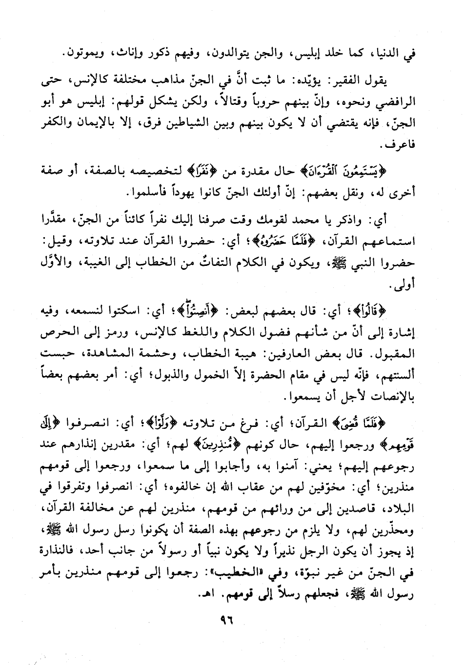 يقول الفقير: يؤيّده: ما ثبت أنَّ في الجنّ مذاهب مختلفة كالإنس، حتى الرافضي ونحوه، وإنّ بينهم حروبًا وقتالًا، ولكن يشكل قولهم: إبليس هو أبو الجنّ، فإنه يقتضي أن لا يكون بينهم وبين الشياطين فرق، إلا بالإيمان والكفر فاعرف.