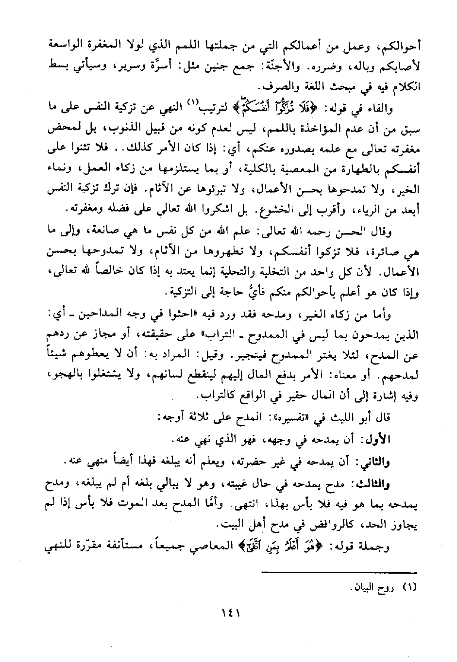 قال أبو الليث في "تفسيره": المدح على ثلاثة أوجه: