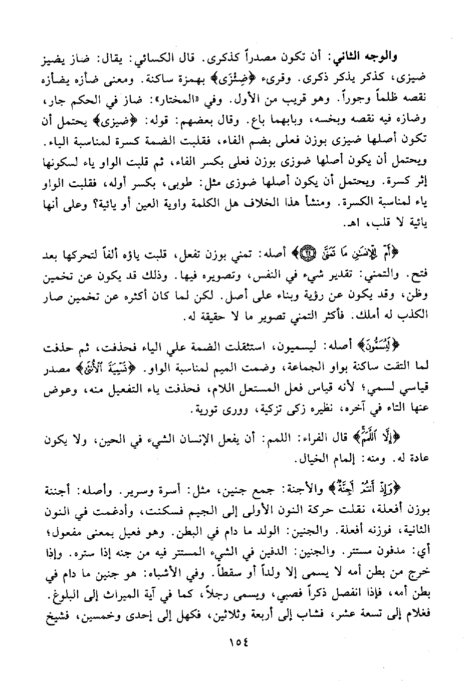 والوجه الثاني: أن تكون مصدرًا كذكرى. قال الكسائي: يقال: ضاز يضيز ضيزى، كذكر يذكر ذكرى. وقرىء {ضِئْزَى} بهمزة ساكنة. ومعنى ضأزه يضأزه نقصه ظلمًا وجورًا. وهو قريب عن الأول. وفي "المختار": ضاز في الحكم جار، وضازه فيه نقصه وبخسه، وبابهما باع. وقال بعضهم: قوله: {ضيزى} يحتمل أن تكون أصلها ضيزى بوزن فعلى بضم الفاء، فقلبت الضمة كسرة لمناسبة الياء. ويحتمل أن يكون أصلها ضوزى بوزن فعلى بكسر الفاء، ثم قلبت الواو ياء لسكونها إثر كسرة. ويحتمل أن يكون أصلها ضوزى مثل: طوبى، بكسر أوله، فقلبت الواو ياء لمناسبة الكسرة. ومنشأ هذا الخلاف هل الكلمة واوية العين أو يائية؟ وعلى أنها يائية لا قلب، اهـ.