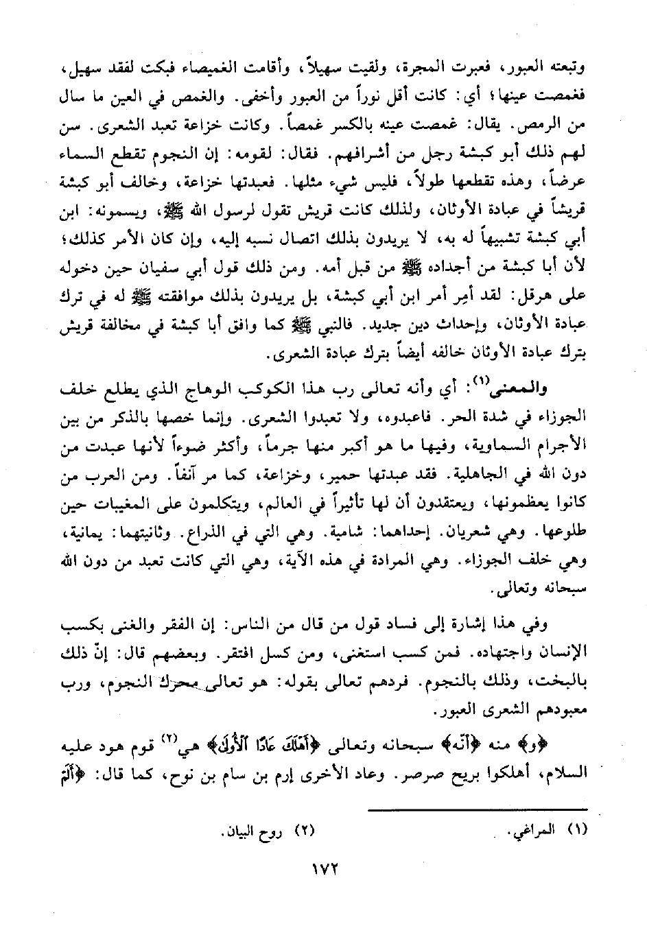 وفي هذا إشارة إلى فساد قول من قال من الناس: إن الفقر والغنى بكسب الإنسان واجتهاده. فمن كسب استغنى، ومن كسل افتقر. وبعضهم قال: إنّ ذلك بالبخت، وذلك بالنجوم. فردهم تعالى بقوله: هو تعالى محرك النجوم، ورب معبودهم الشعرى العبور.