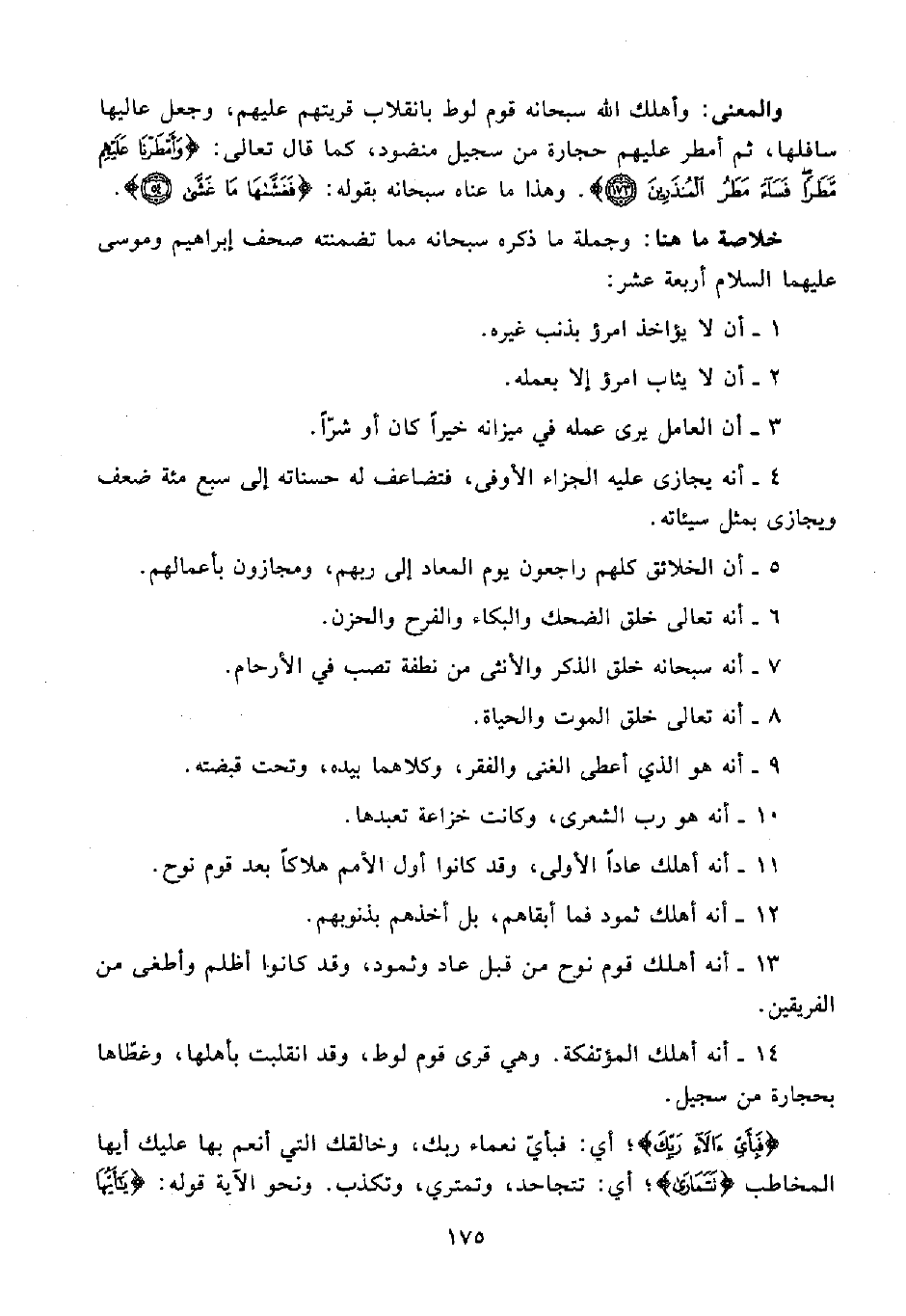 14 - أنه أهلك المؤتفكة. وهي قرى قوم لوط، وقد انقلبت بأهلها، وغطّاها بحجارة من سجيل.