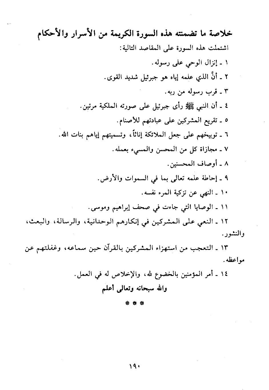 خلاصة ما تضمنته هذه السورة الكريمة من الأسرار والأحكام