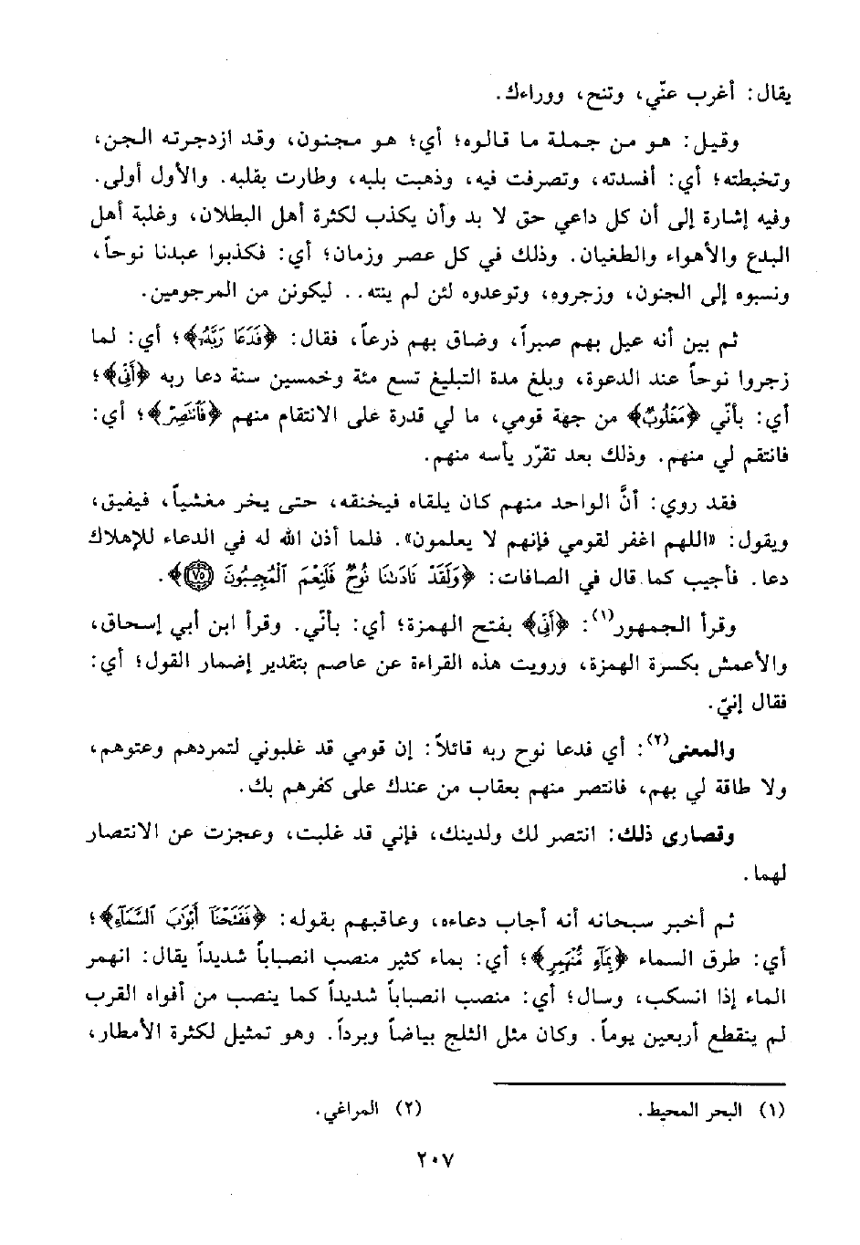 فقد روي: أنَّ الواحد منهم كان يلقاه فيخنقه، حتى يخر مغشيًا، فيفيق، ويقول: "اللهم اغفر لقومي فإنهم لا يعلمون". فلما أذن الله له في الدعاء للإهلاك دعا. فأجيب كما قال في الصافات: {وَلَقَدْ نَادَانَا نُوحٌ فَلَنِعْمَ الْمُجِيبُونَ (75)}.