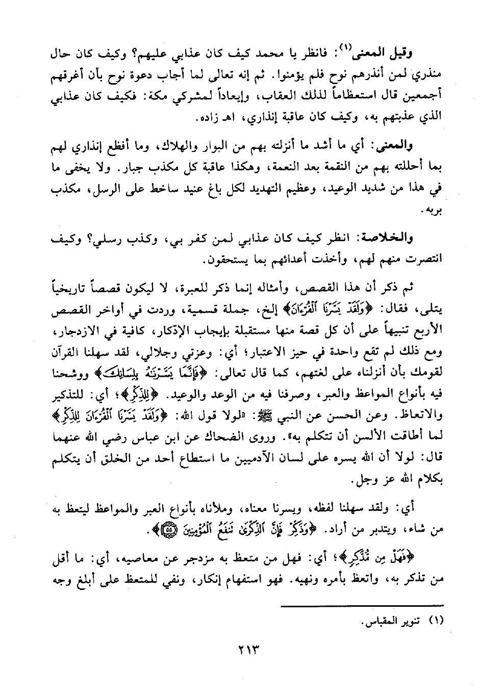 17 - ثم ذكر أن هذا القصص، وأمثاله إنما ذكر للعبرة، لا ليكون قصصًا تاريخيًا يتلى, فقال: {وَلَقَدْ يَسَّرْنَا الْقُرْآنَ} إلخ، جملة قسمية، وردت في أواخر القصص الأربع تنبيهًا على أن كل قصة منها مستقبلة بإيجاب الإدّكار، كافية في الازدجار, ومع ذلك لم تقع واحدة في حيز الاعتبار؛ أي: وعزتي وجلالي، لقد سهلنا القرآن لقومك بأن أنذلناه على لغتهم، كما قال تعالى: {فَإِنَّمَا يَسَّرْنَاهُ بِلِسَانِكَ} ووشحنا فيه بأنواع المواعظ والعبر، وصرفنا فيه من الوعد والوعيد. {لِلذِّكْر}؛ أي: للتذكير والاتعاظ. وعن الحسن عن النبي - صلى الله عليه وسلم -: "لولا قول الله: {وَلَقَدْ يَسَّرْنَا الْقُرْآنَ لِلذِّكْرِ} لما أطاقت الألسن أن تتكلم به". وروى الضحاك عن ابن عباس رضي الله عنهما قال: لولا أن الله يسره على لسان الآدميين ما استطاع أحد من الخلق أن يتكلم بكلام الله عَزَّ وَجَلَّ.