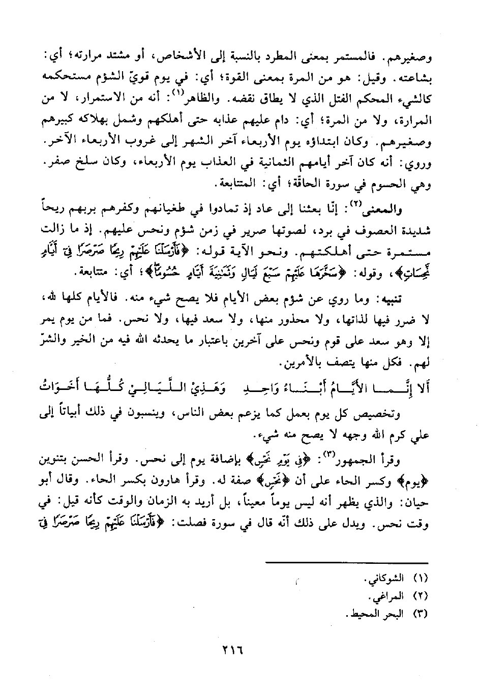 وقرأ الجمهور (¬3): {فِي يَوْمِ نَحْسٍ} بإضافة يوم إلى نحس. وقرأ الحسن بتنوين {يوم} وكسر الحاء على أن {نَحْسٍ} صفة له. وقرأ هارون بكسر الحاء. وقال أبو حيان: والذي يظهر أنه ليس يومًا معينًا، بل أريد به الزمان والوقت كأنه قيل: في وقت نحس. ويدل على ذلك أنّه قال في سورة فصلت: {فَأَرْسَلْنَا عَلَيْهِمْ رِيحًا صَرْصَرًا فِي