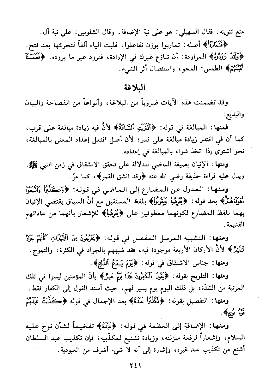وقد تضمنت هذه الآيات ضروبًا من البلاغة، وأنواعًا من الفصاحة والبيان والبديع: