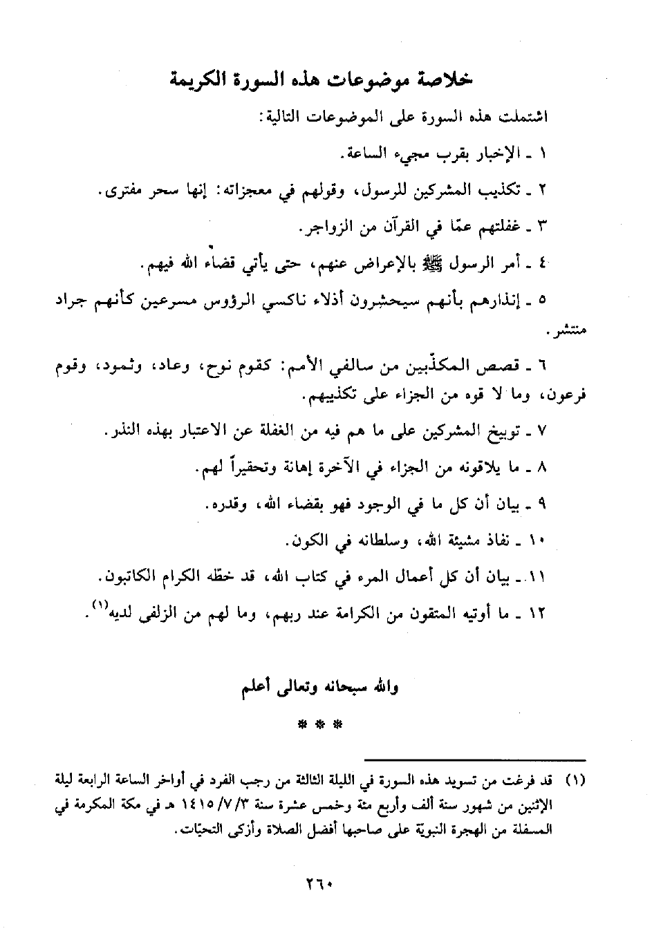 (¬1) قد فرغت من تسويد هذه السورة في الليلة الثالثة من رجب الفرد في أواخر الساعة الرابعة ليلة الإثنين من شهور سنة ألف وأربع مئة وخمس عشرة سنة 3/ 7/ 1415 هـ في مكة المكرمة في المسفلة من الهجرة النبويّة على صاحبها أفضل الصلاة وأذكى التحيّات.