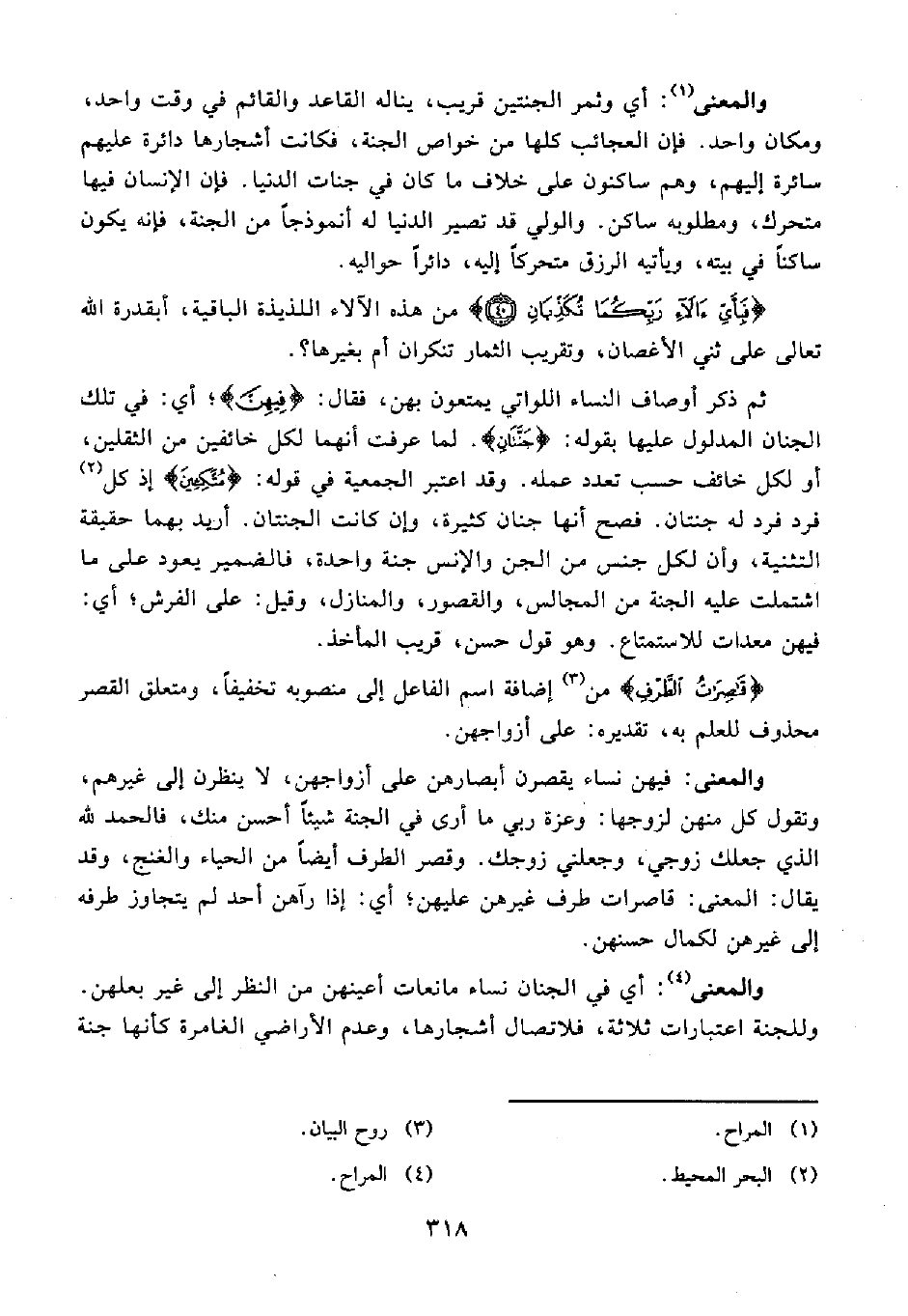 والمعنى (¬4): أي في الجنان نساء مانعات أعينهن من النظر إلى غير بعلهن. وللجنة اعتبارات ثلاثة، فلا تصال أشجارها، وعدم الأراضي الغامرة كأنها جنة