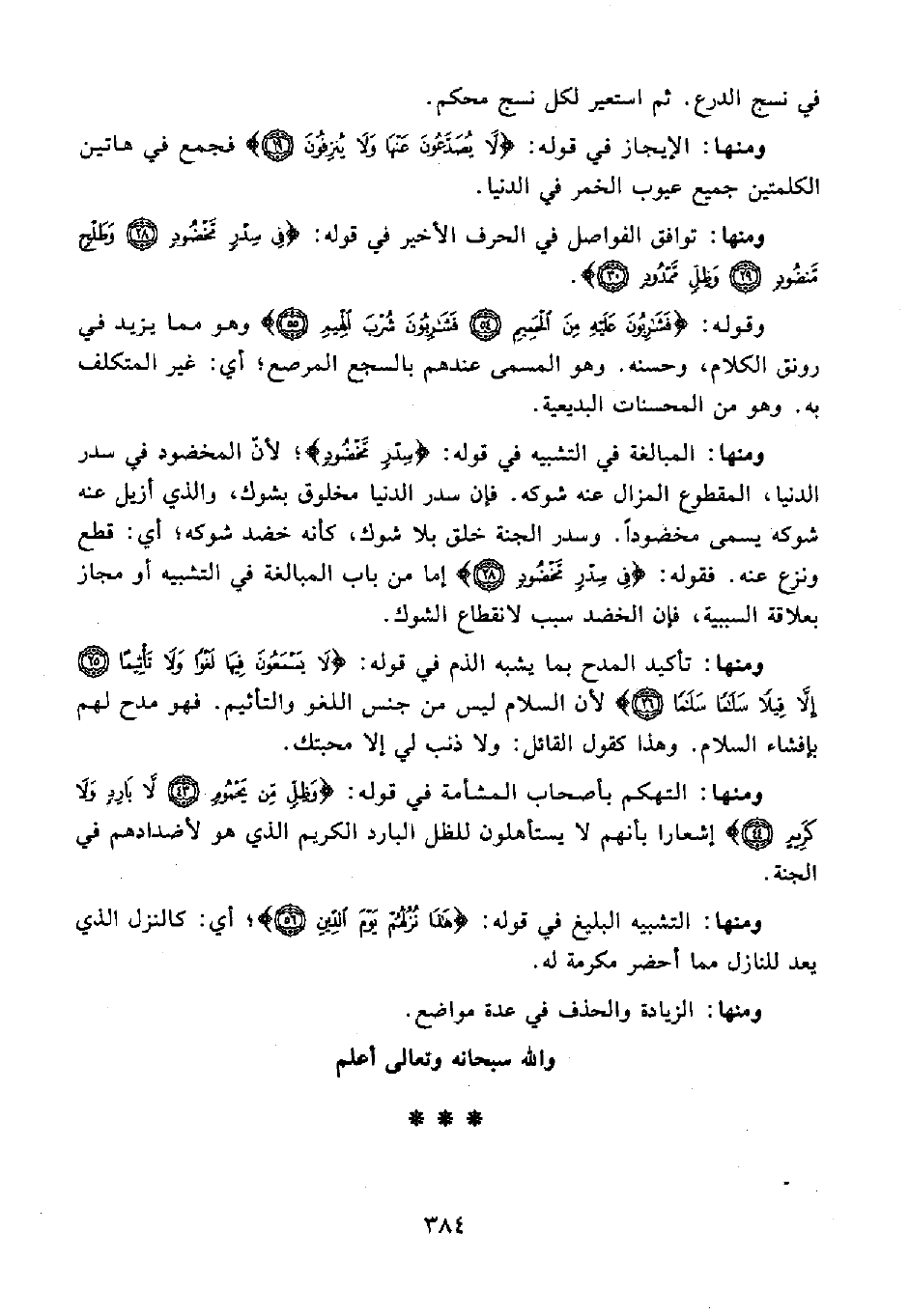 ومنها: توافق الفواصل في الحرف الأخير في قوله: {فِي سِدْرٍ مَخْضُودٍ (28) وَطَلْحٍ مَنْضُودٍ (29) وَظِلٍّ مَمْدُودٍ (30)}.