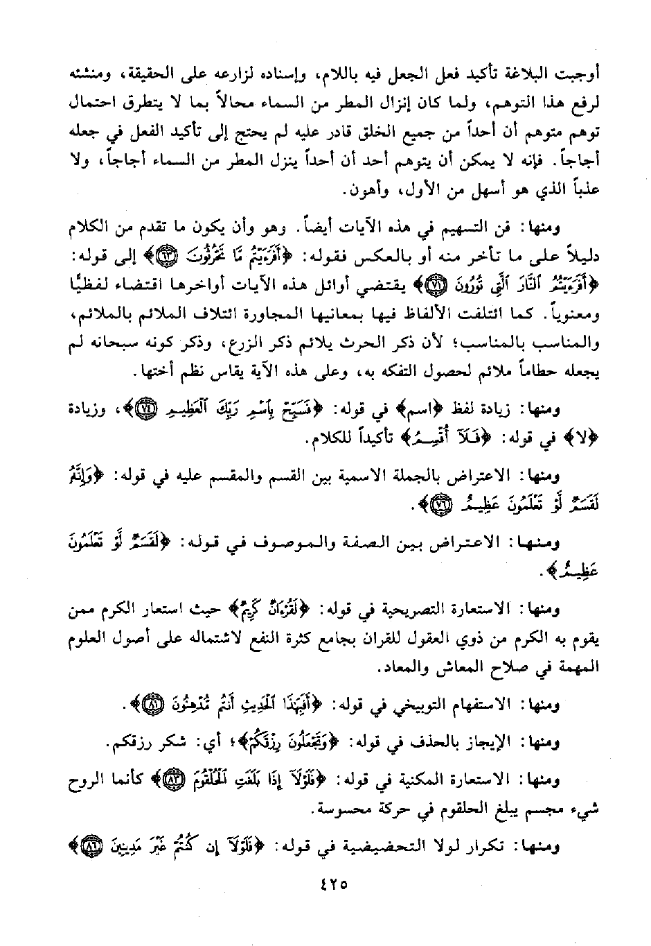 ومنها: زيادة لفظ {اسم} في قوله: {فَسَبِّحْ بِاسْمِ رَبِّكَ الْعَظِيمِ (74)}، وزيادة {لا} في قوله: {فَلَا أُقْسِمُ} تأكيدًا للكلام.