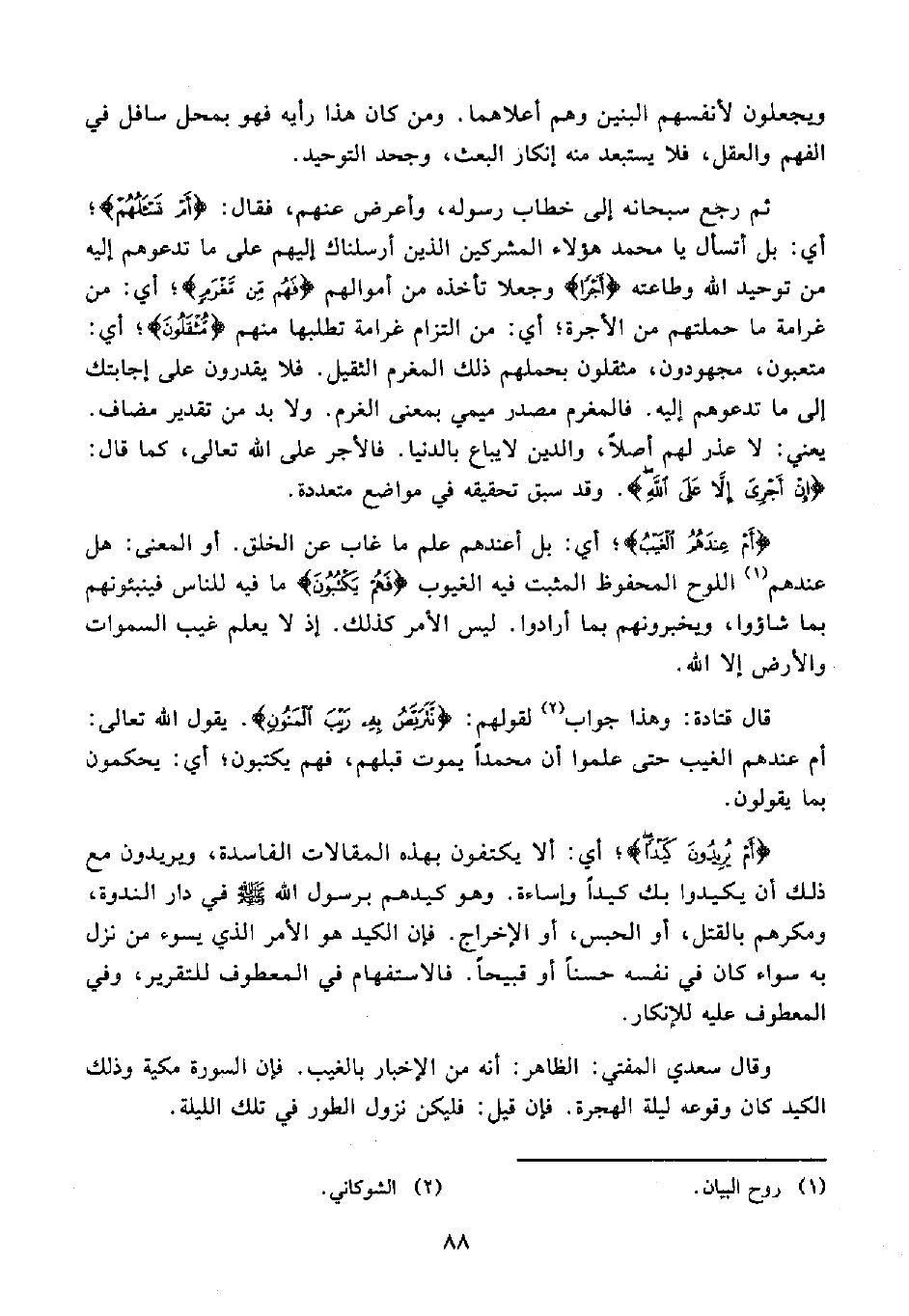 وقال سعدي المفتي: الظاهر: أنه من الإخبار بالغيب. فإن السورة مكية وذلك الكيد كان وقوعه ليلة الهجرة. فإن قيل: فليكن نزول الطور في تلك الليلة.