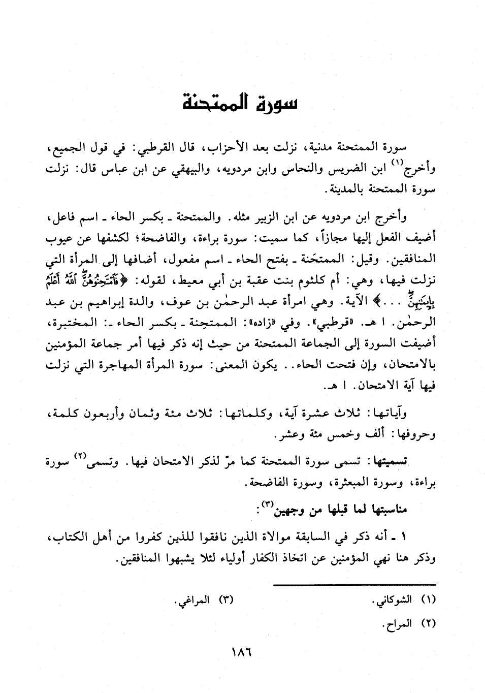 تسميتها: تسمى سورة الممتحنة كما مرّ لذكر الامتحان فيها. وتسمى (¬2) سورة براءة، وسورة المبعثرة، وسورة الفاضحة.