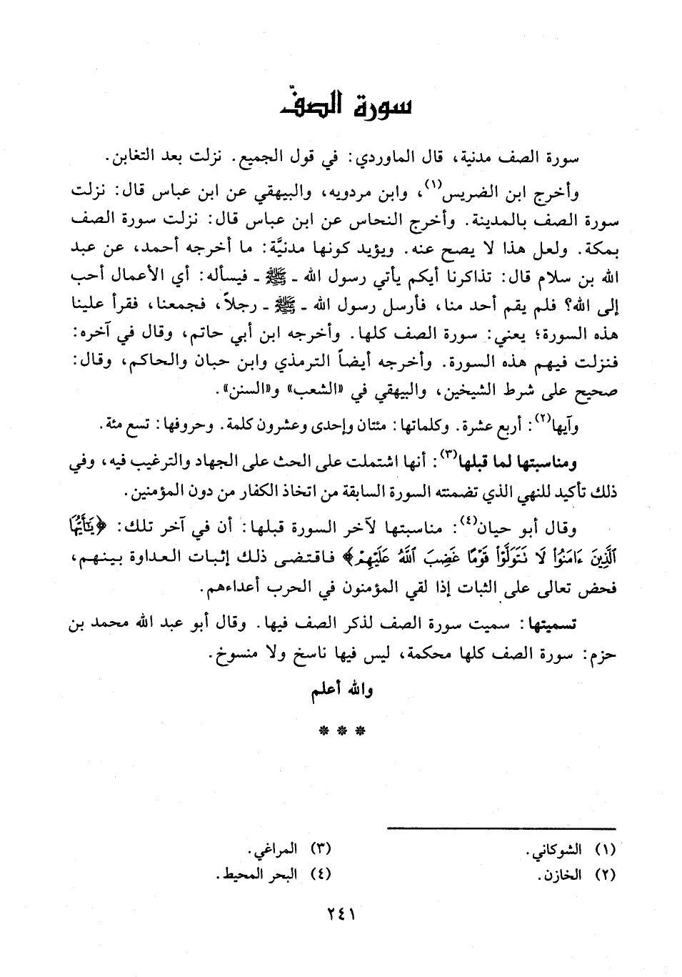 وقال أبو حيان (¬4): مناسبتها لآخر السورة قبلها: أن في آخر تلك: {يَا أَيُّهَا الَّذِينَ آمَنُوا لَا تَتَوَلَّوْا قَوْمًا غَضِبَ اللَّهُ عَلَيْهِمْ} فاقتضى ذلك إثبات العداوة بينهم، فحض تعالى على الثبات إذا لقي المؤمنون في الحرب أعداءهم.