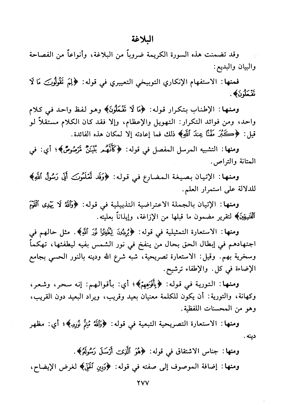 ومنها: الاستعارة التصريحية التبعية في قوله: {وَاللَّهُ مُتِمُّ نُورِهِ}؛ أي: مظهر دينه.