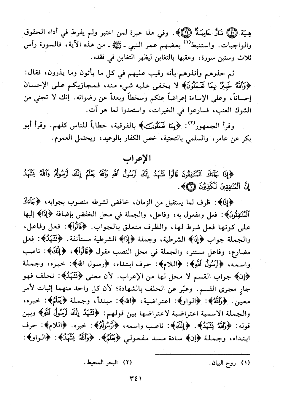 {إِذَا جَاءَكَ الْمُنَافِقُونَ قَالُوا نَشْهَدُ إِنَّكَ لَرَسُولُ اللَّهِ وَاللَّهُ يَعْلَمُ إِنَّكَ لَرَسُولُهُ وَاللَّهُ يَشْهَدُ إِنَّ الْمُنَافِقِينَ لَكَاذِبُونَ (1)}.
