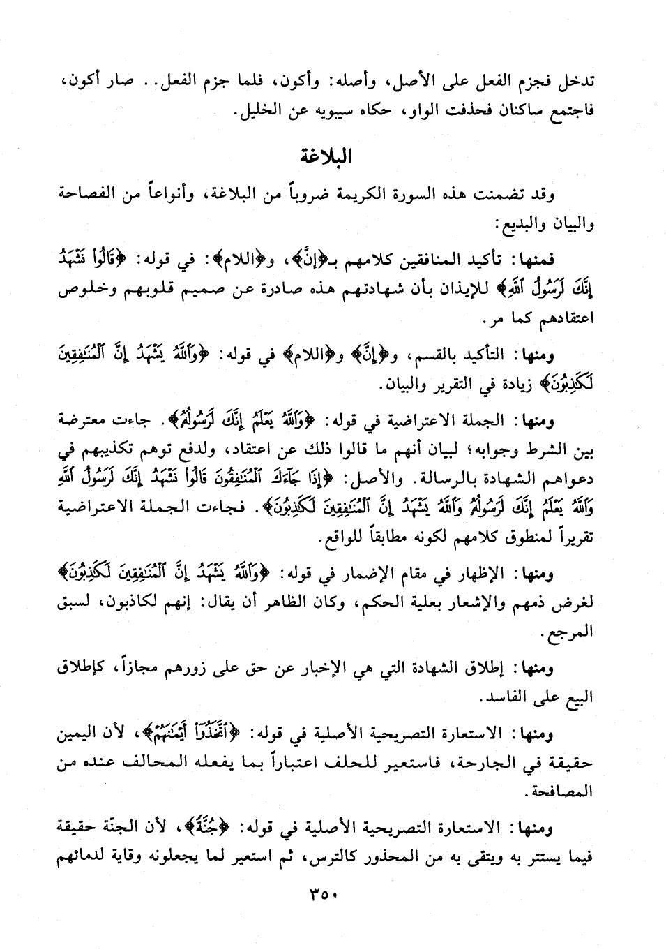 ومنها: التأكيد بالقسم، و {إنَّ} و {اللام} في قوله: {وَاللَّهُ يَشْهَدُ إِنَّ الْمُنَافِقِينَ لَكَاذِبُونَ} زيادة في التقرير والبيان.