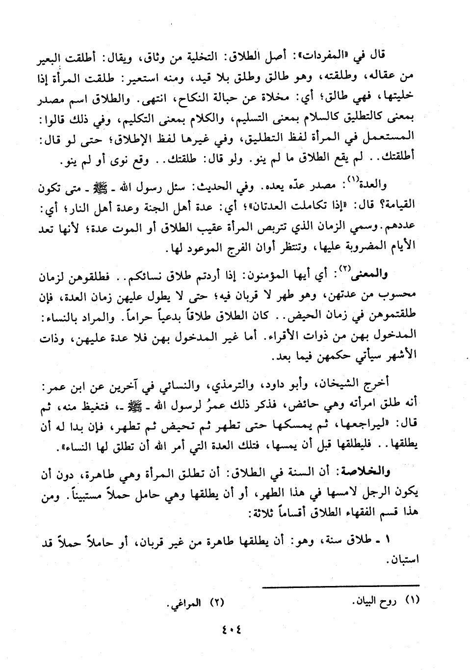 والخلاصة: أن السنة في الطلاق: أن تطلق المرأة وهي طاهرة، دون أن يكون الرجل لامسها في هذا الطهر، أو أن يطلقها وهي حامل حملًا مستبينًا. ومن هذا قسم الفقهاء الطلاق أقسامًا ثلاثة: