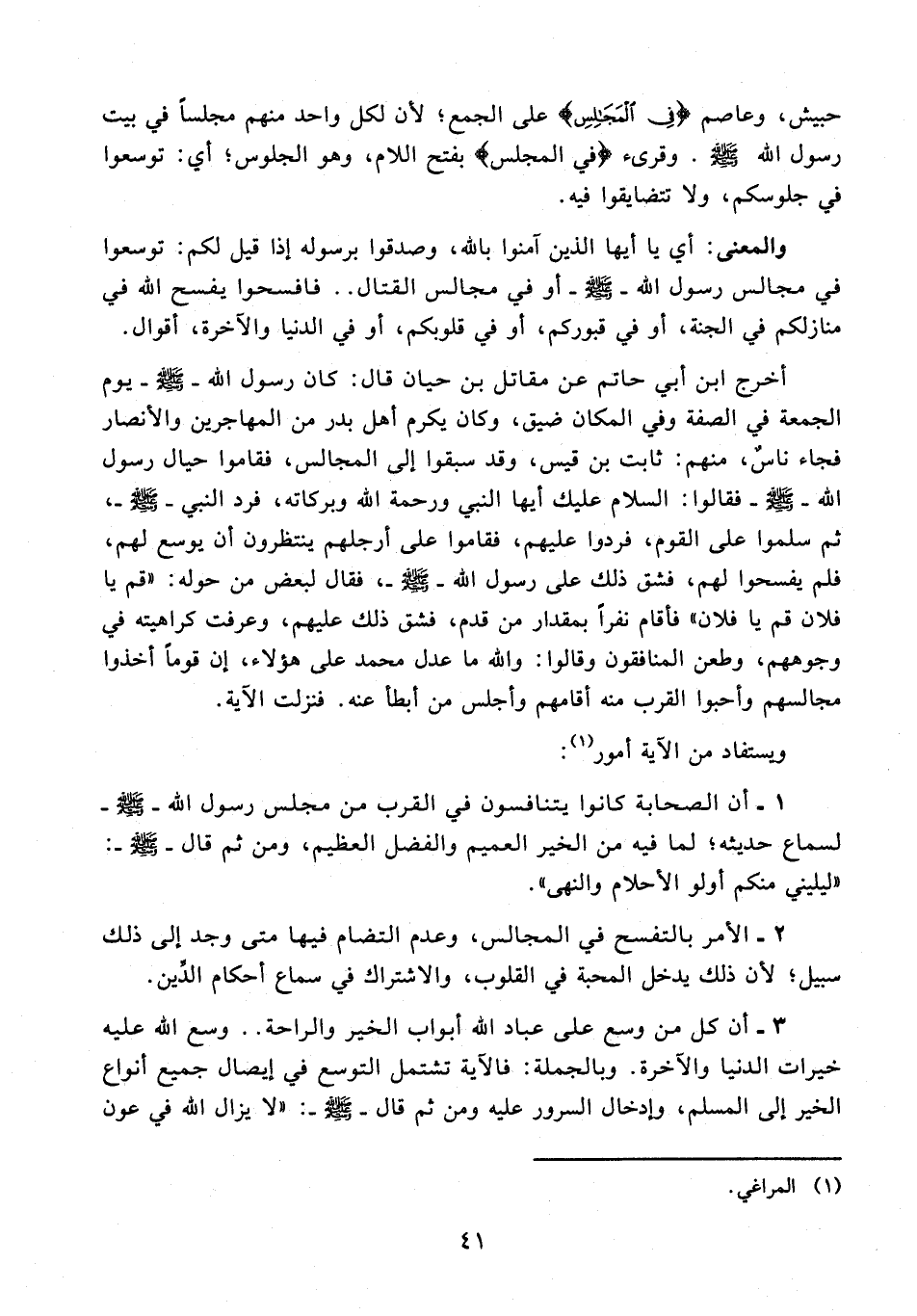 2 - الأمر بالتفسح في المجالس، وعدم التضام فيها متى وجد إلى ذلك سبيل؛ لأن ذلك يدخل المحبة في القلوب، والاشتراك في سماع أحكام الدِّين.