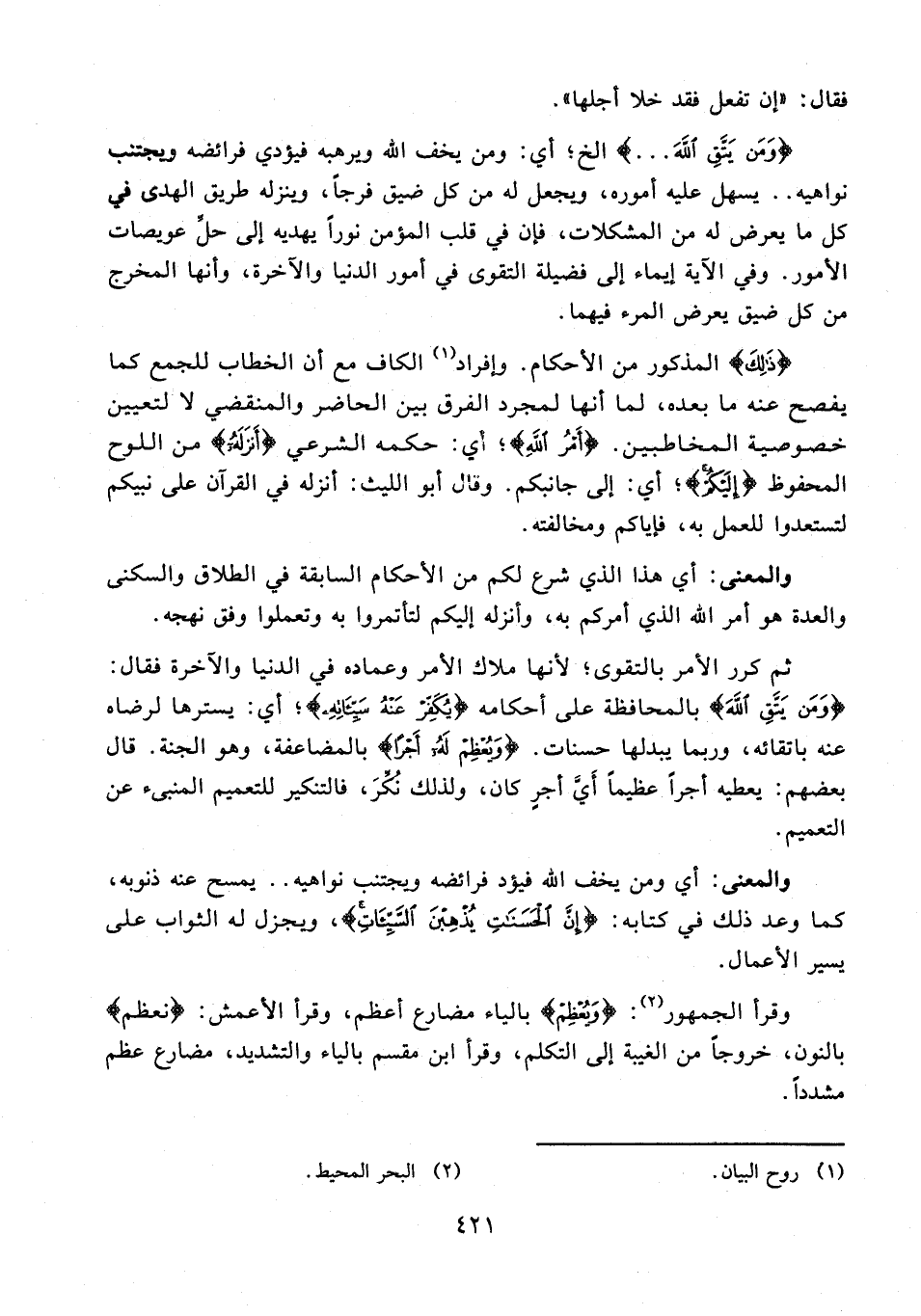والمعني: أي هذا الذي شرع لكم من الأحكام السابقة في الطلاق والسكنى والعدة هو أمر الله الذي أمركم به، وأنزله إليكم لتأتمروا به وتعملوا وفق نهجه.