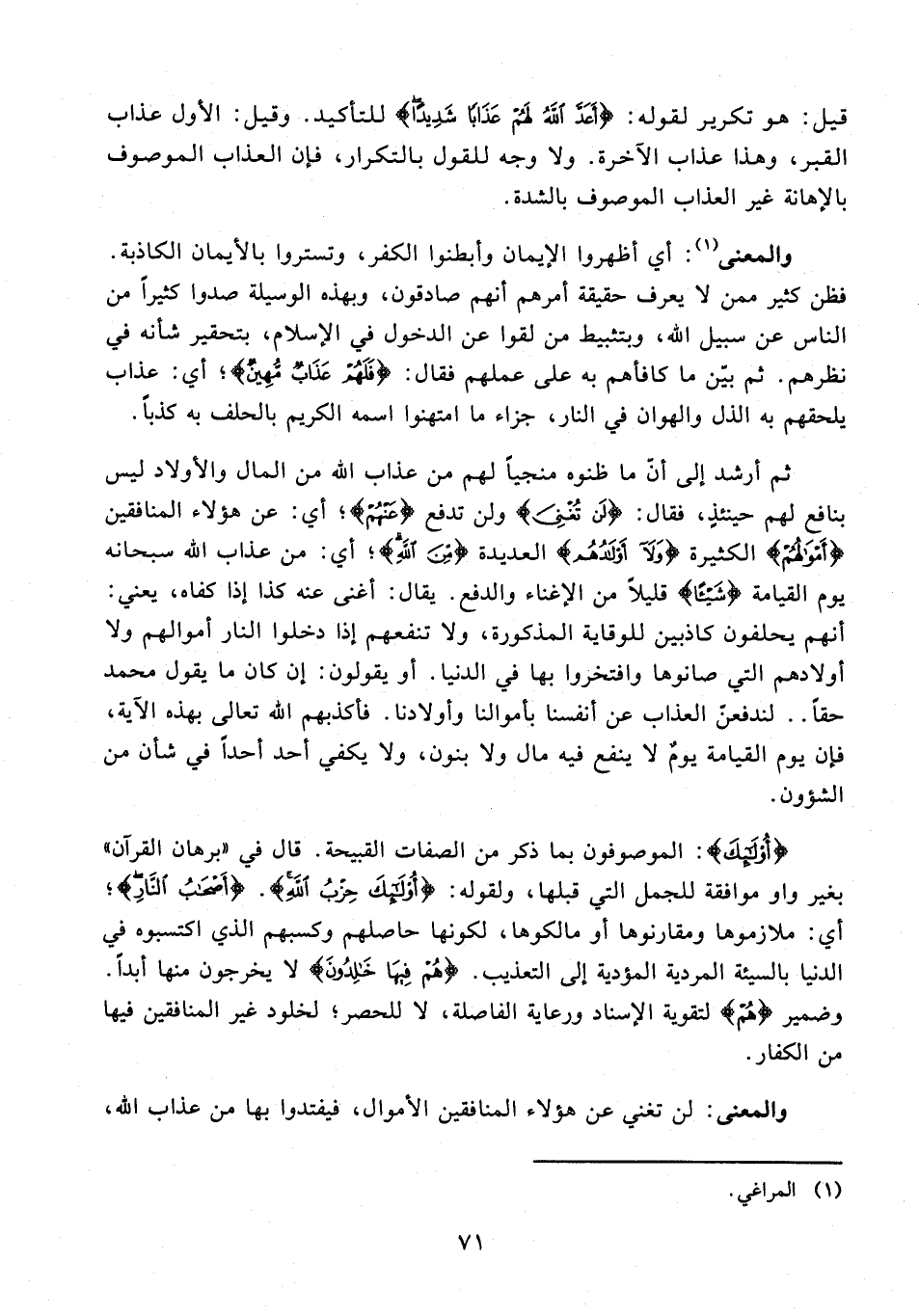 والمعنى: لن تغني عن هؤلاء المنافقين الأموال، فيفتدوا بها من عذاب الله،