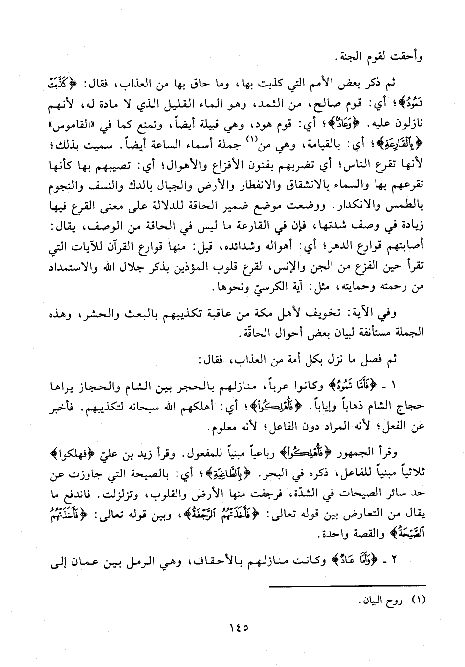 1 - {فَأَمَّا ثَمُودُ} وكانوا عربًا، منازلهم بالحجر بين الشام والحجاز يراها حجاج الشام ذهابًا وايابًا. {فَأُهْلِكُوا}؛ أي: أهلكهم الله سبحانه لتكذيبهم. فأخبر عن الفعل؛ لأنه المراد دون الفاعل؛ لأنه معلوم.