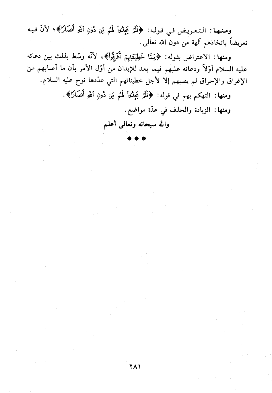 ومنها: التعريض في قوله: {فَلَمْ يَجِدُوا لَهُمْ مِنْ دُونِ اللهِ أَنْصَارًا}؛ لأنّ فيه تعريضًا باتخاذهم آلهة من دون الله تعالى.