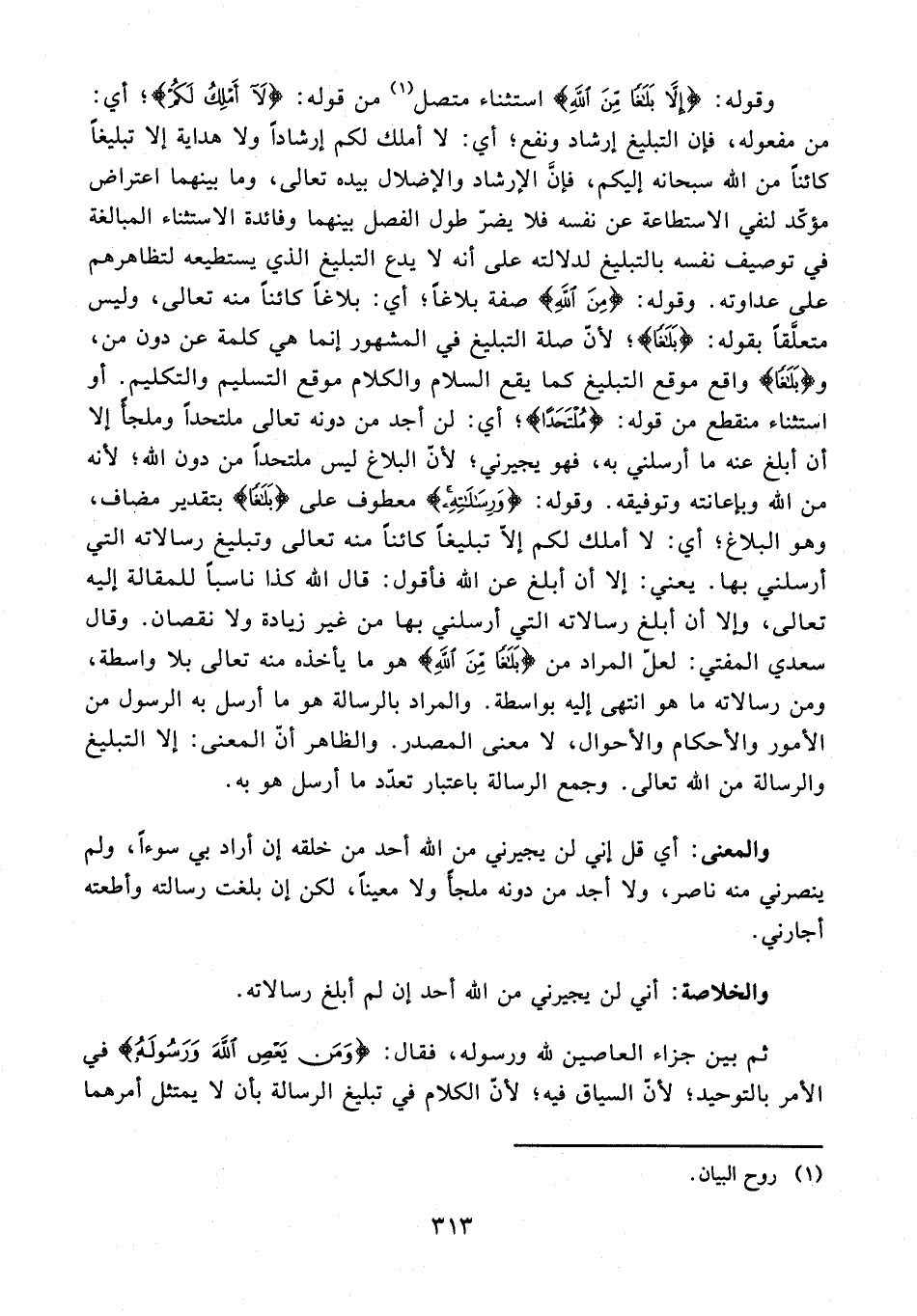 والخلاصة: أني لن يجيرني من الله أحد إن لم أبلغ رسالاته.